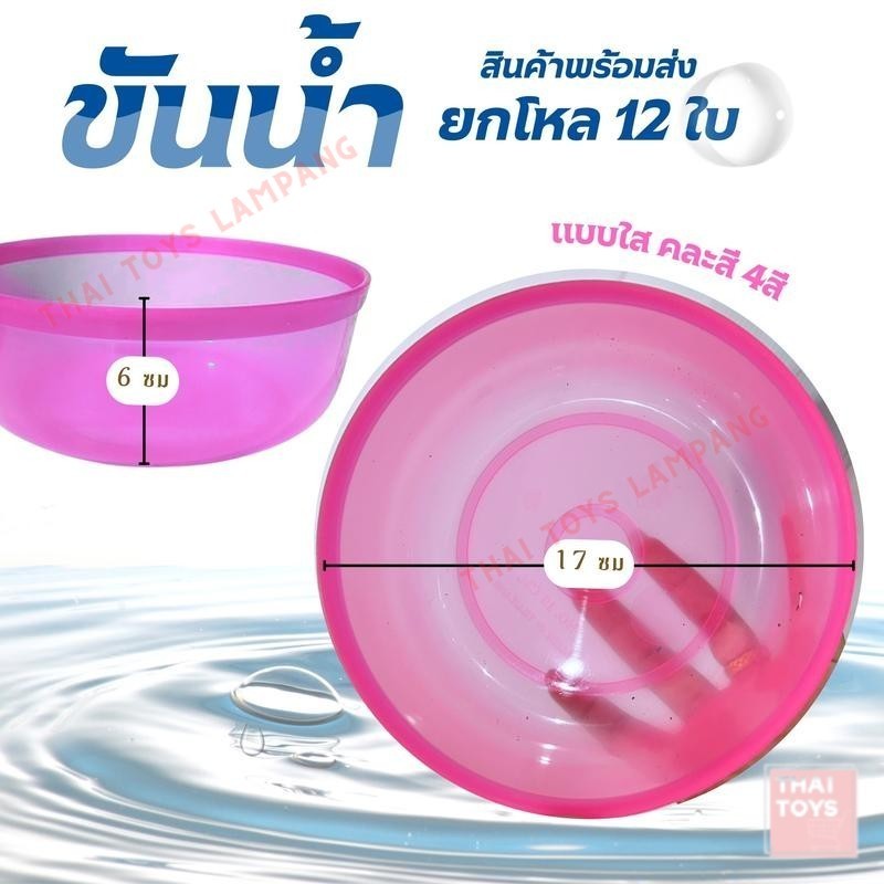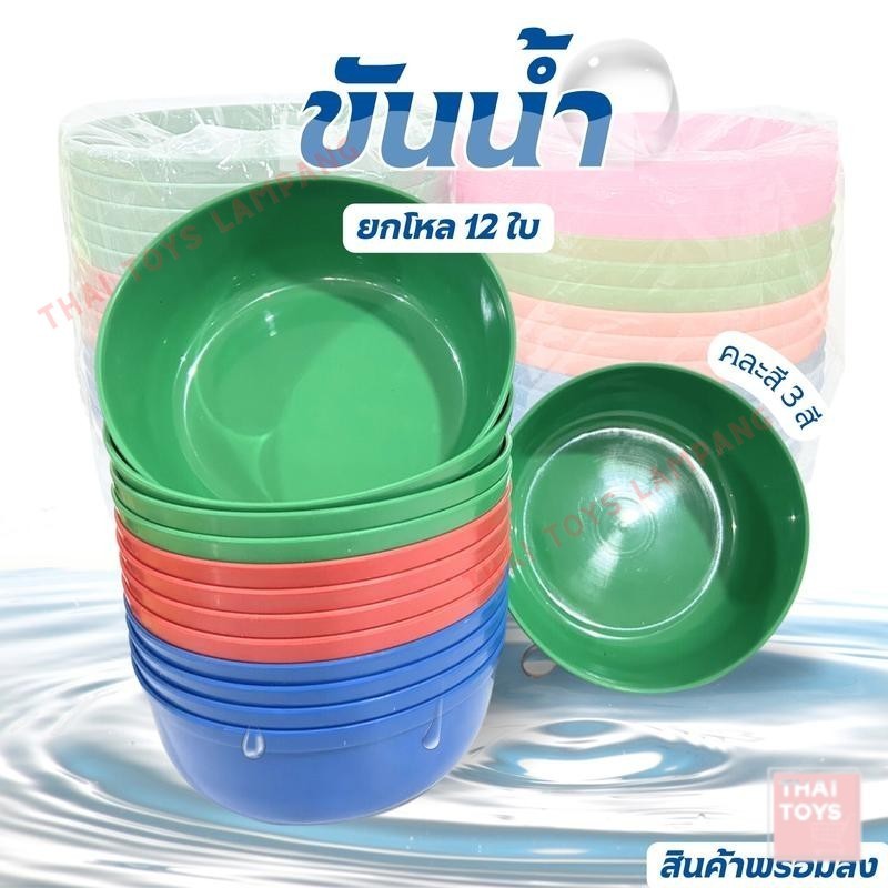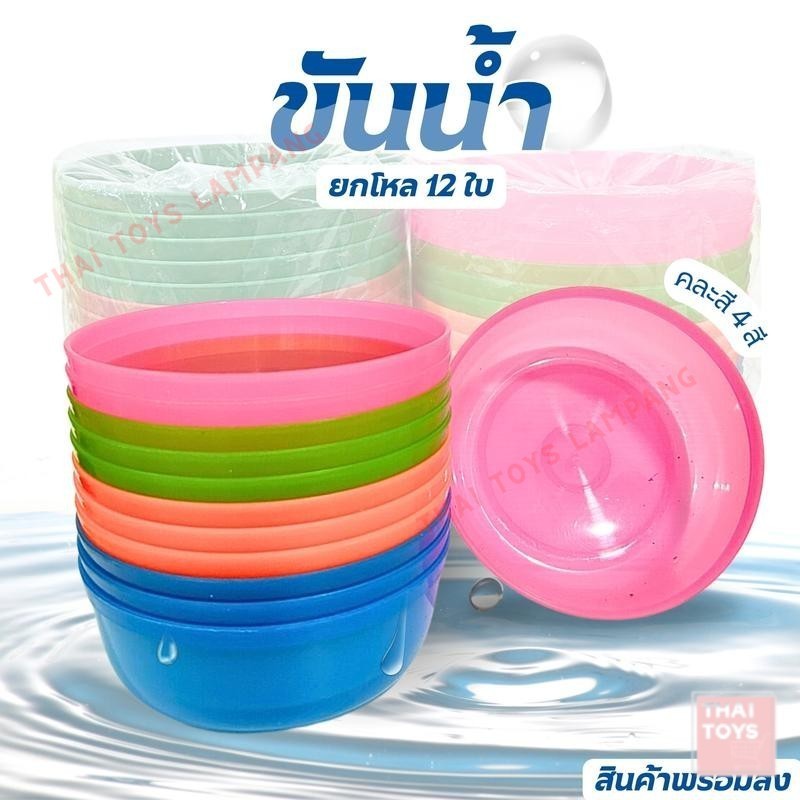 ขันน้ำ ขันตักน้ำ ขันสงกรานต์ ขันพลาสติก ขันน้ำพลาสติก สีสดใส มี ขนาด14/18/20 ซม. ยกโหล 12 ใบ