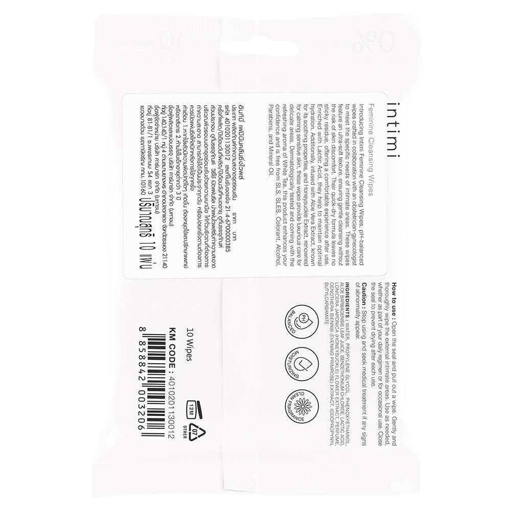 Intimi【ห่อ/10แผ่น】แผ่นเช็ดทำความสะอาด【สำหรับผู้หญิง】สูตรอ่อนโยน Feminine Cleansing Wipes