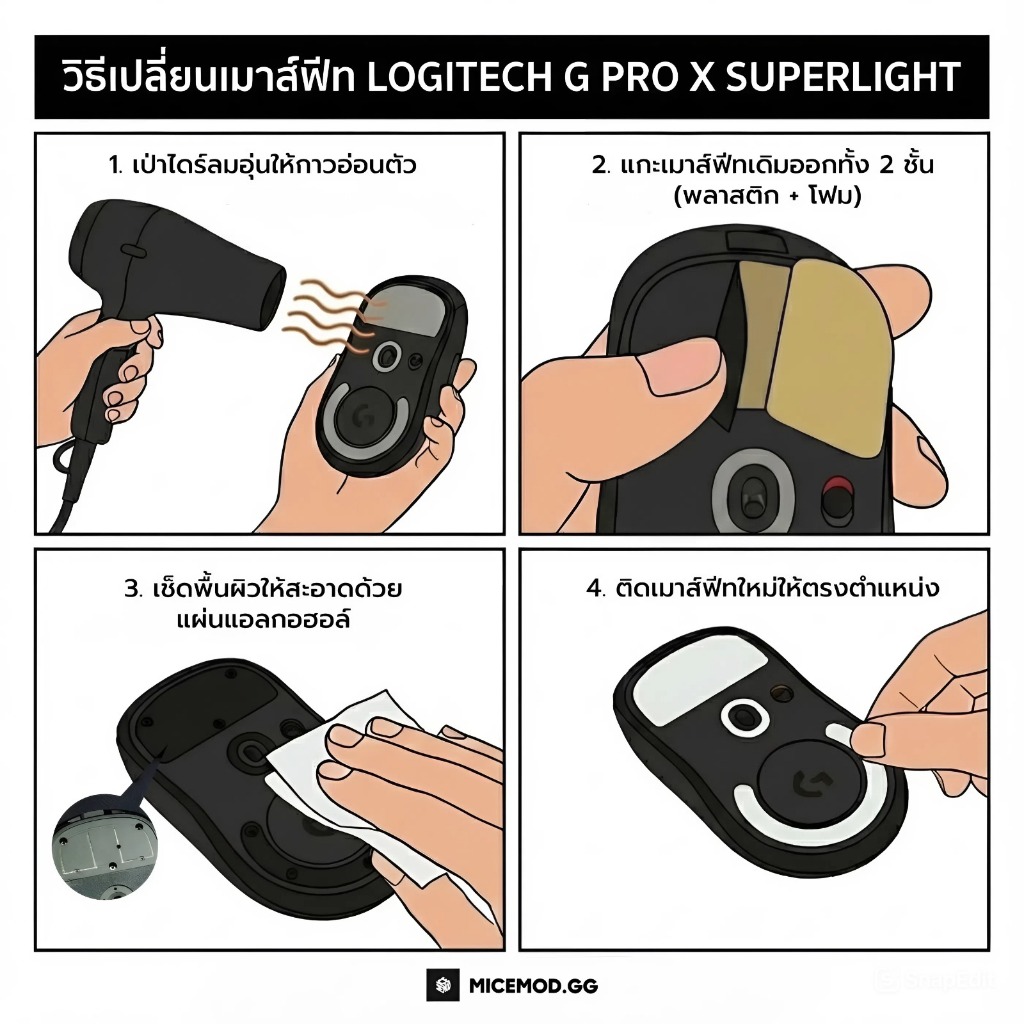 เมาส์ฟีท Esports Tiger ICE V2 / Arc 1 / Snow ของ G PRO X Superlight 1 / 2 / 2c / 2 DEX