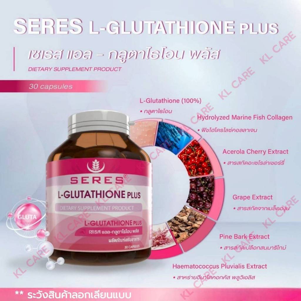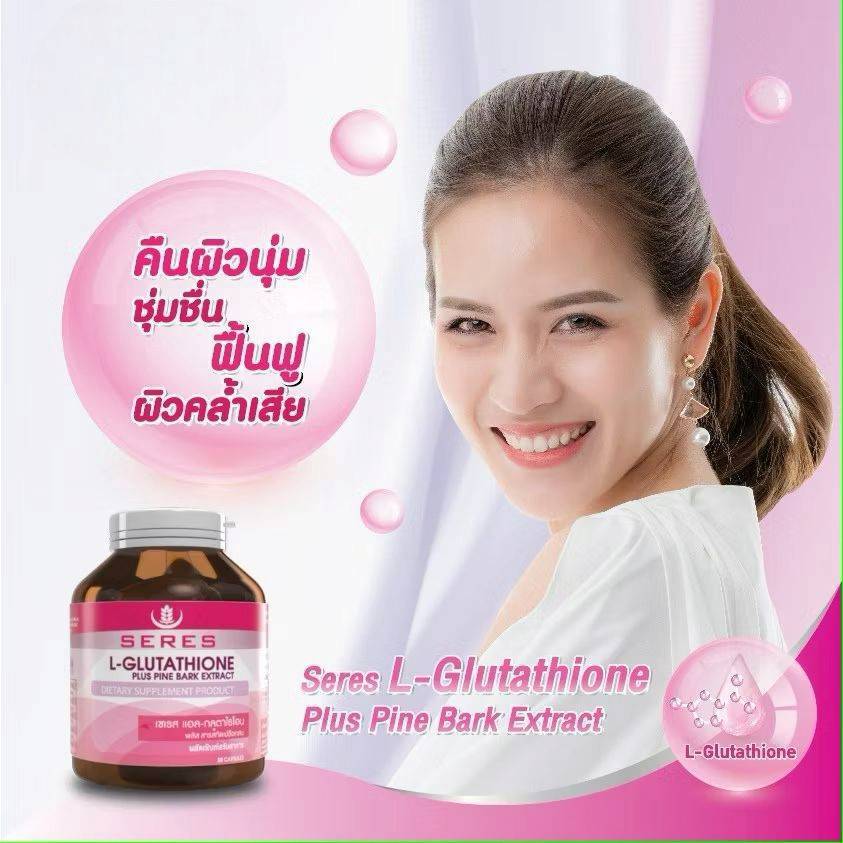 Gluta L-Glutathione Collagen กลูต้า กลูต้าไธโอน วิตามินบำรุงผิว ช่วยให้ผิวกระจ่างใส SERES 30 แคปซูล