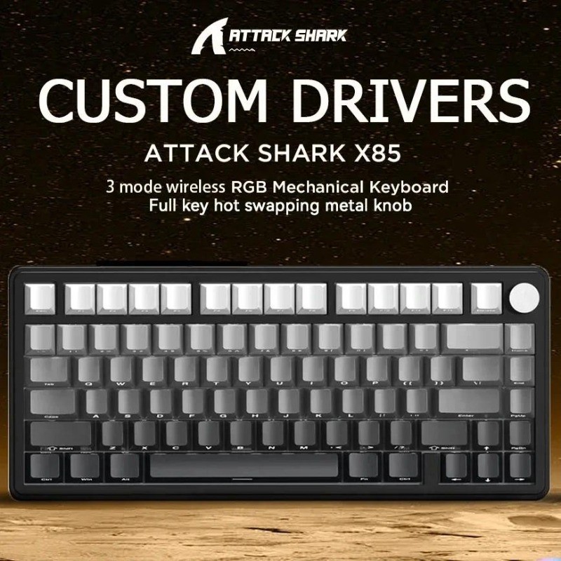 ATTACK SHARK X85 Wireless Mechanical Gaming Keyboard with Knob Hot Swappable 75% Gasket Keyboard RGB Coiled Cable Linear White Jade Switch for PC/MAC/Win