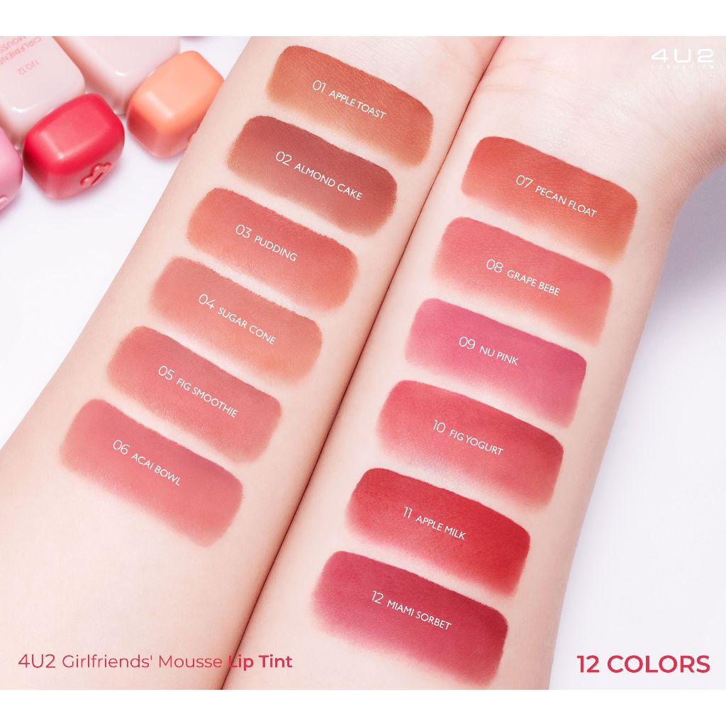 ทินท์มูส 4U2 GIRLFRIENDS' MOUSSE LIP TINT - ทินท์มูส ลิปสติกเนื้อมูส ลิปติดทน ลิป4U2 lip4u2 ลิปเนื้อมูส ลิป4U2