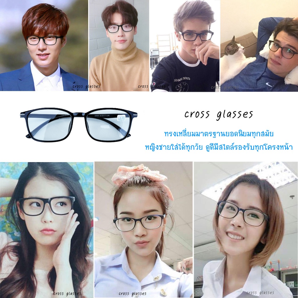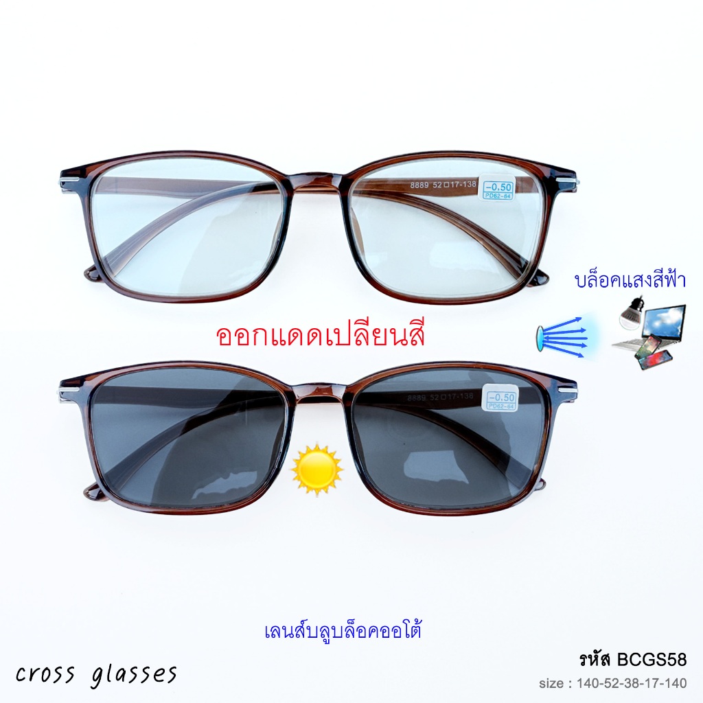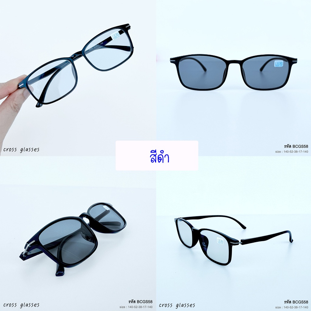 แว่นสายตาสั้น -0.5ถึง-6.0 และสายตาปกติ เลนส์บลูฯออโต้ ทรงเหลี่ยม รหัส BCGS58