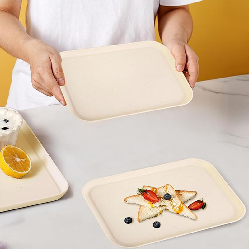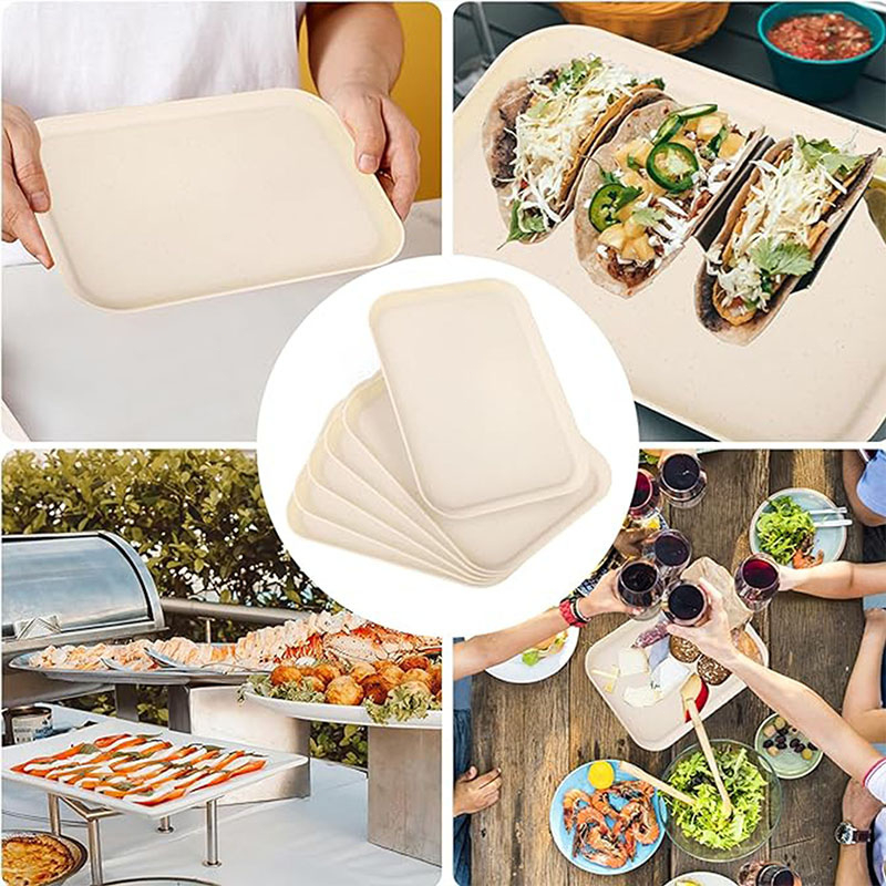 ถาดฟางข้าวสาลี ถาดพลาสติก ถาดใส่อาหาร ถาดเสิร์ฟอาหาร สี่เหลี่ยม ถาดไม้ จานอาหารwheat straw สีเบจถาดเสิร์ฟ