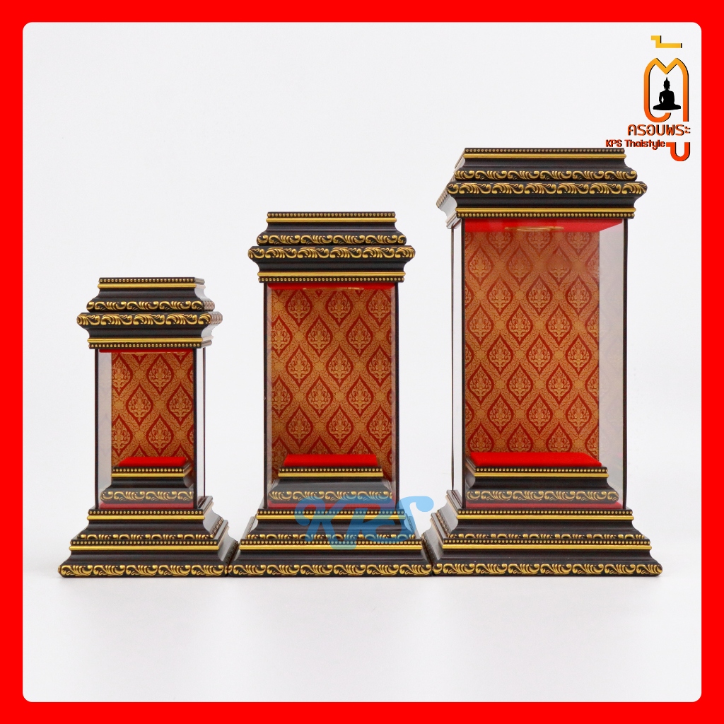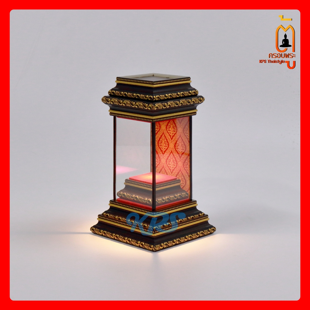 ตู้ใส่พระตู้ครอบพระ กรอบพระ ทรงสูง พระยืน ฉากหลังลายเทพพนม ไฟ LED สีวอร์ม KPSThaistyle..