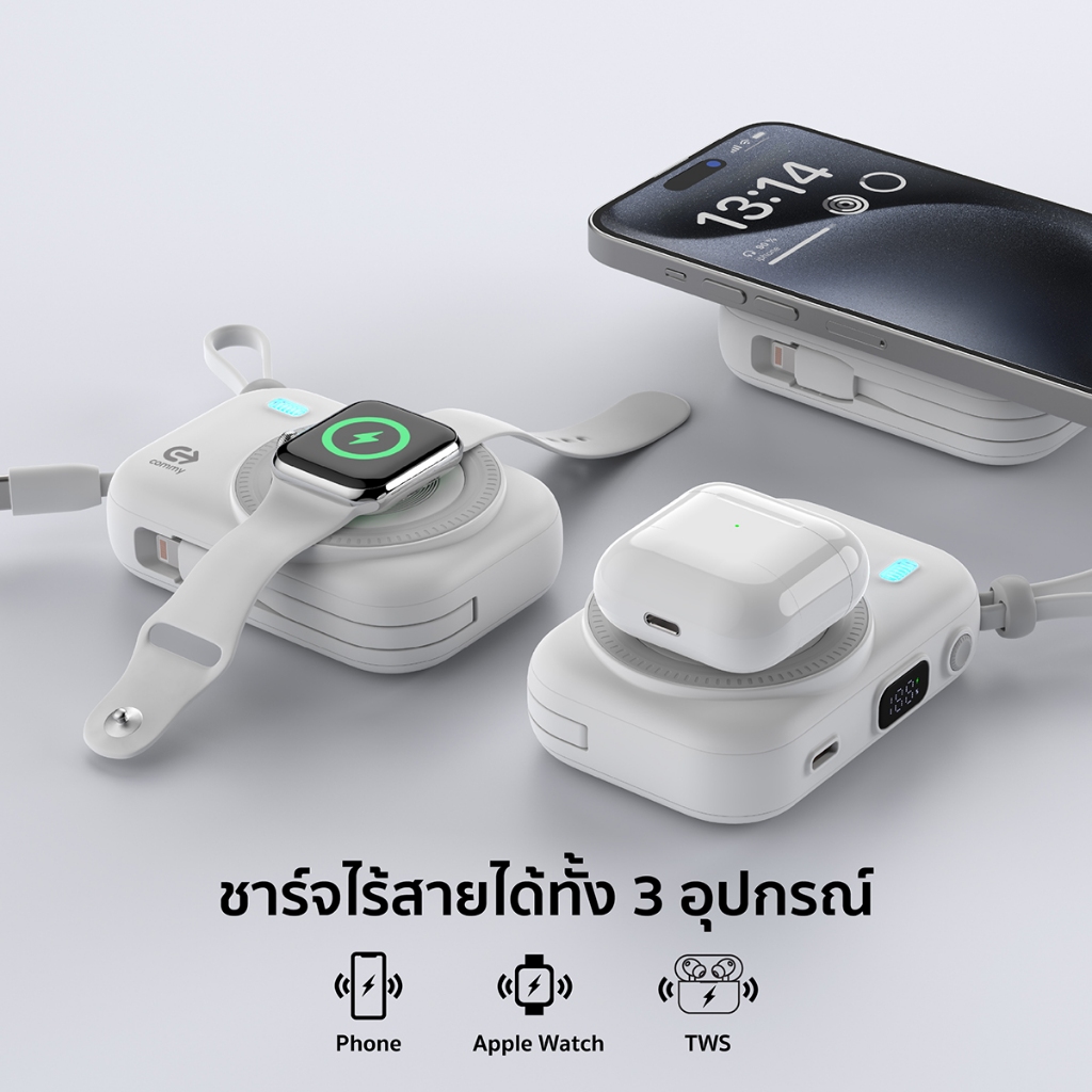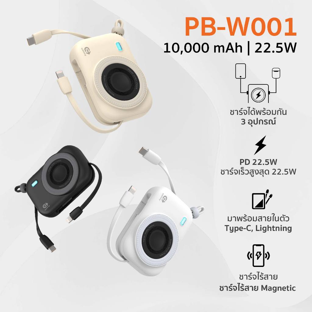 (มี CCC) Commy Powerbank พาวเวอร์แบงค์ชาร์จไร้สาย 22.5W Magnetic 15W รุ่น W001/W002 มีสายในตัว มอก