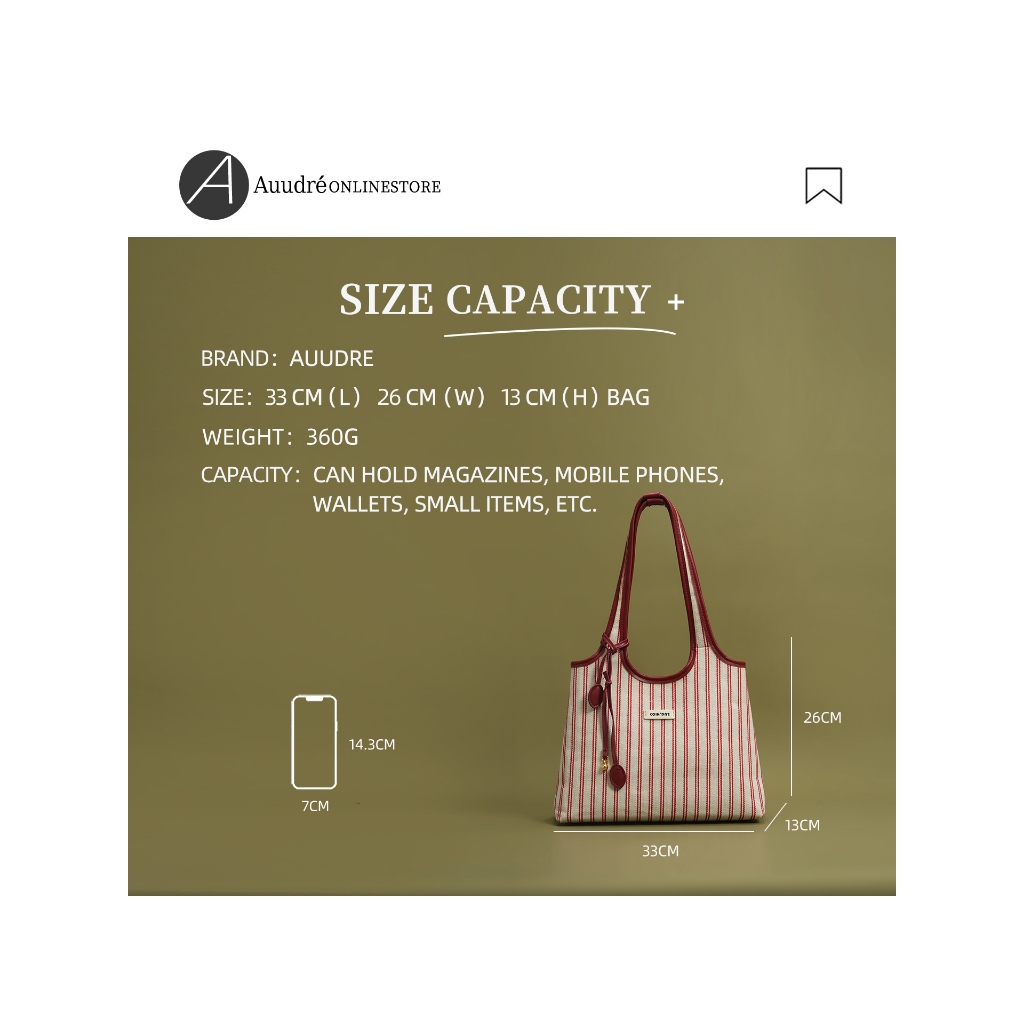 กระเป๋าลายทางแบบเรียบๆ Auure สำหรับผู้หญิง ขนาดใหญ่ สะพายได้ง่าย