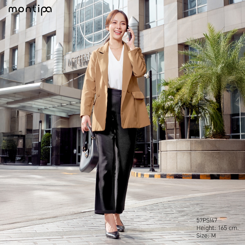 Montipa กางเกงทรงสอบ แต่งจีบหน้าและยางยืดด้านหลัง ผ้า Iron Free 57PSI47