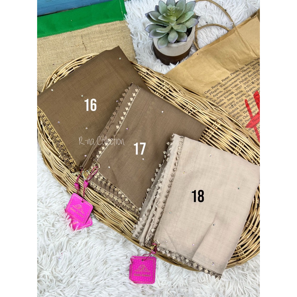 ✨บาวาเพชร ฮิญาบริมลูกไม้ หลาสกู ผ้าบาวา ผ้าวอยส์ เพชรกระจาน ริมลูกไม้ เก๋ น่ารัก ฮิตมาก