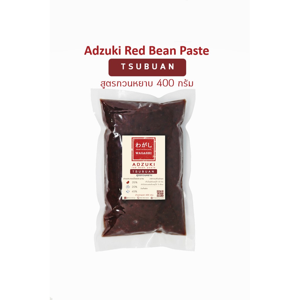 ถั่วแดงอะซูกิกวน สูตรกวนหยาบ ไส้ถั่วแดง ถุงเล็ก 300 กรัม ตราวากาชิ | Tsubuan Red Bean Paste Wagashi