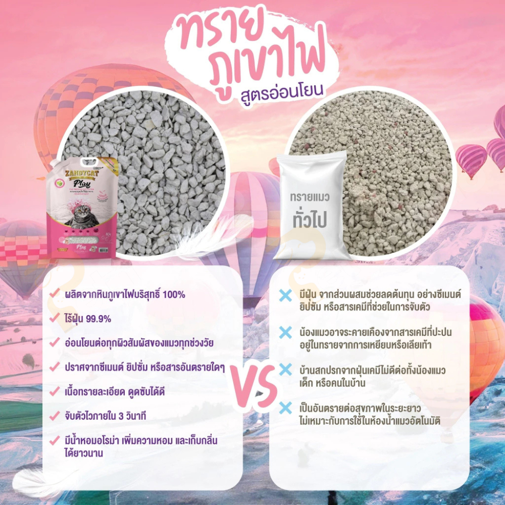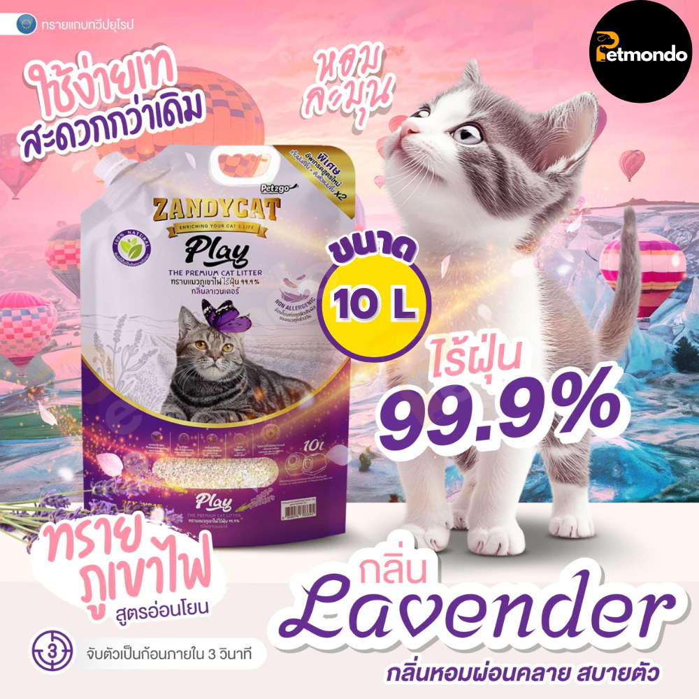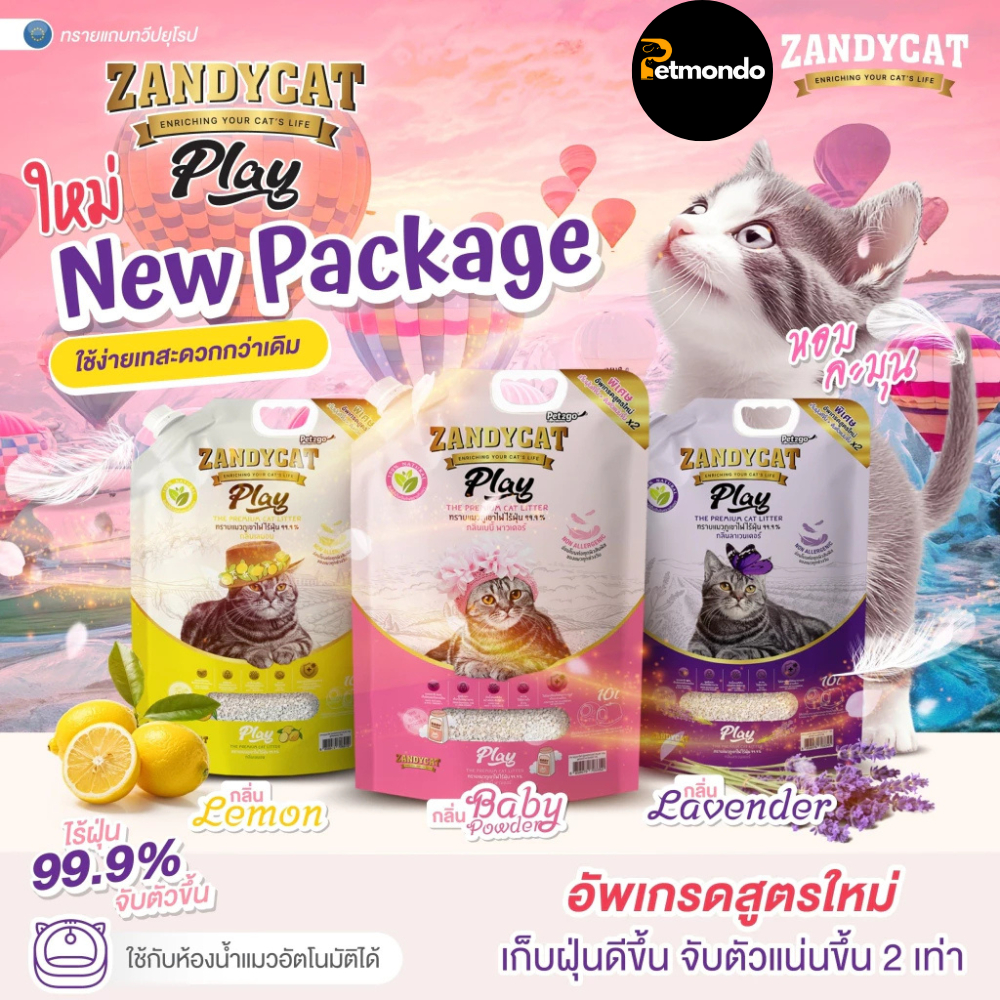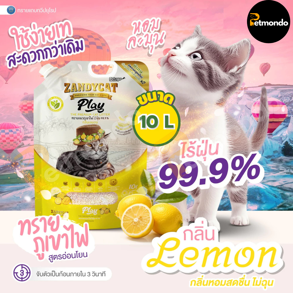 Zandycat Play แซนดี้แคท ทรายแมวภูเขาไฟสูตรอ่อนโยน เก็บฝุ่นดีขึ้นจับตัวแน่นขึ้น มี 3กลิ่น ขนาด 10L