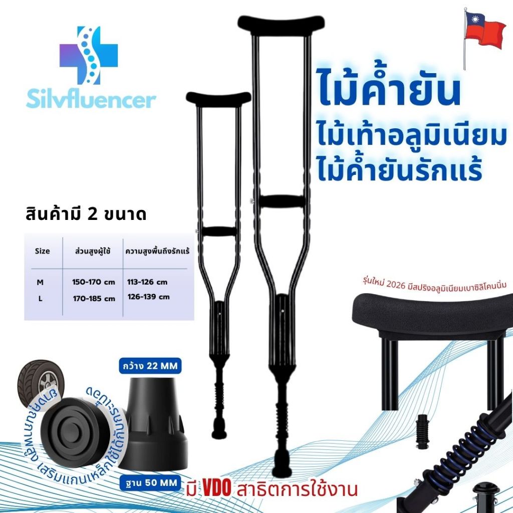 ไม้ค้ำยันอลูมิเนียม รุ่นใหม่ขาซอฟไม่เจ็บ ส่งด่วน ไม้ค้ำยัน ไม้ค้ำข้อรักแร้ ไม้ค้ำรักแร้ ไม้เท้าพยุง