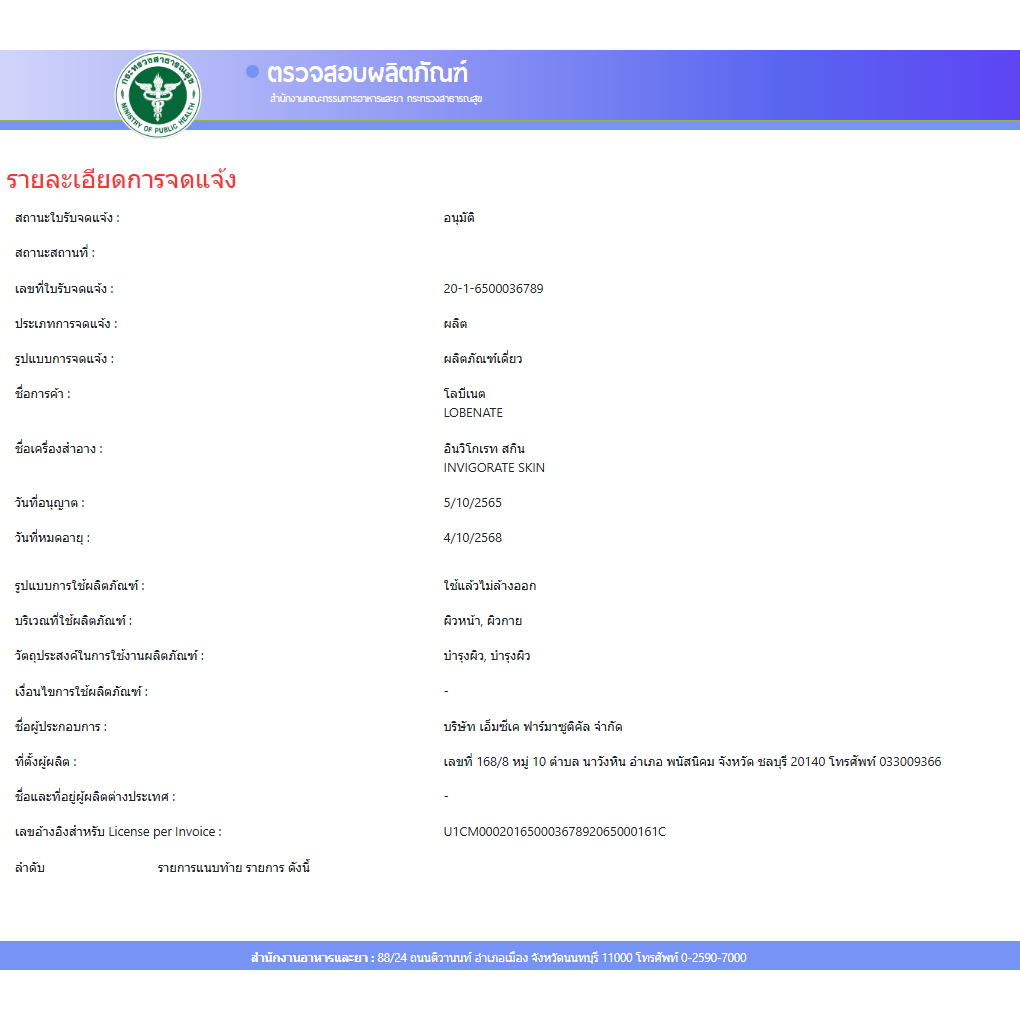 LOBENATE INVIGORATE SKIN ( ชื่อเดิม Fullext Ointment ฟูลเล็กท์ ออนท์เมนท์ ) 20 g.