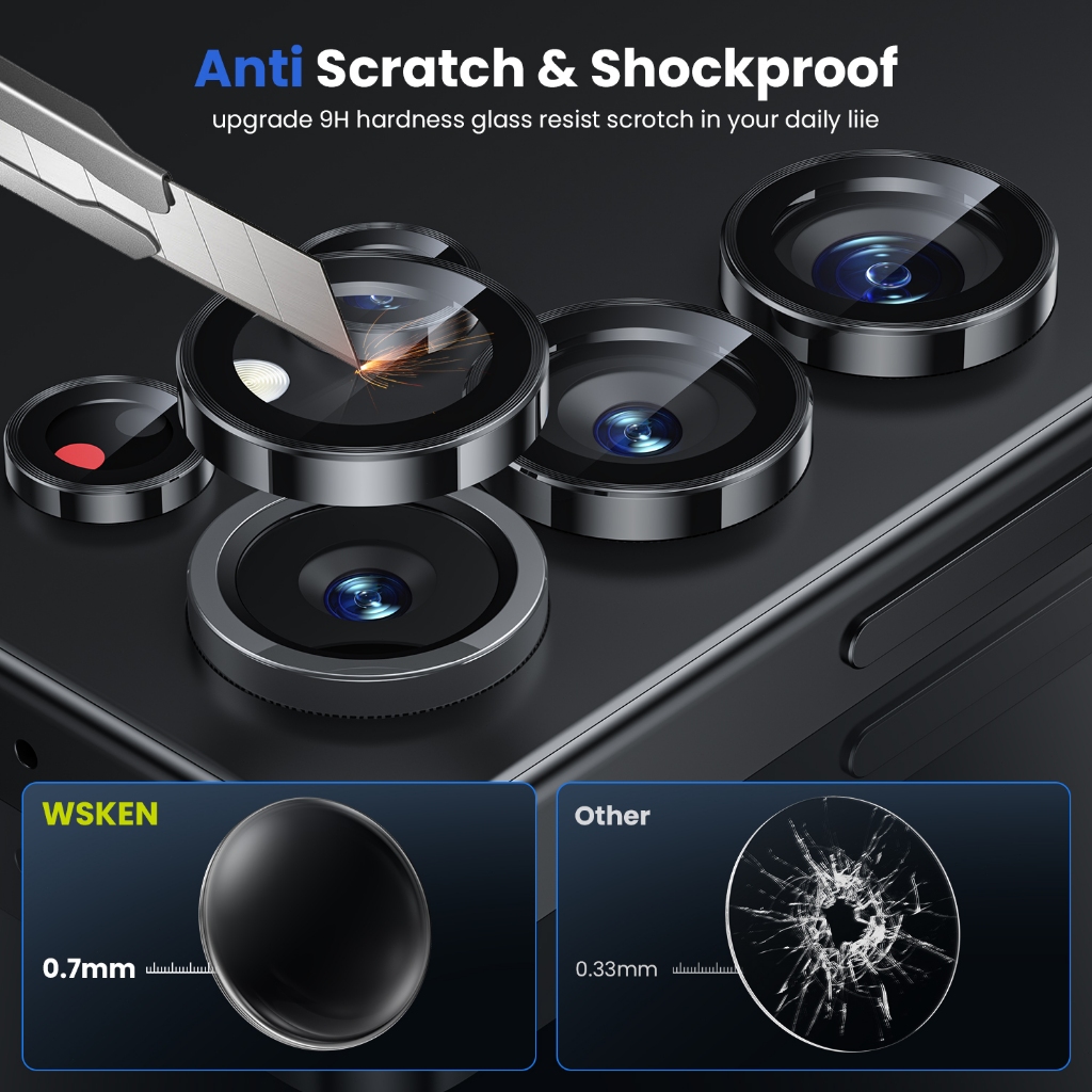 Wsken สําหรับ Samsung Galaxy S25 Ultra S26 Ultra ตัวป้องกันเลนส์กล้อง เคสที่เป็นมิตร ตัวป้องกันหน้าจอกระจกนิรภัย Ultra-HD 9H S25 / S24 / S23 / S22 / Plus / Ultra ป้องกันรอยขีดข่วน Space Titanium Military-Grade Drop Protection S24FE กระจกกันรอย เลนส์กล้อง