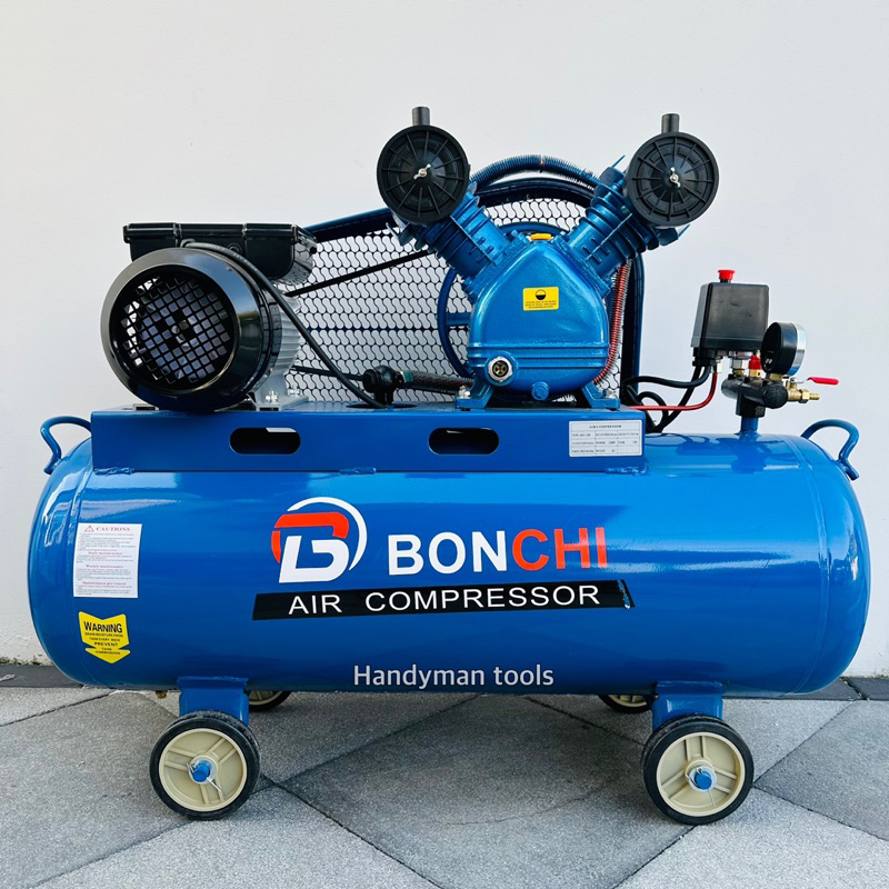 BONCHI ปั๊มลม ถังลม ปั๊มลมสายพาน ขนาด 120 ลิตร มอเตอร์ 2 สูบ 3 แรงม้า มาพร้อมอุปกรณ์ 6 อย่าง (สินค้ามีตัวเลือก)