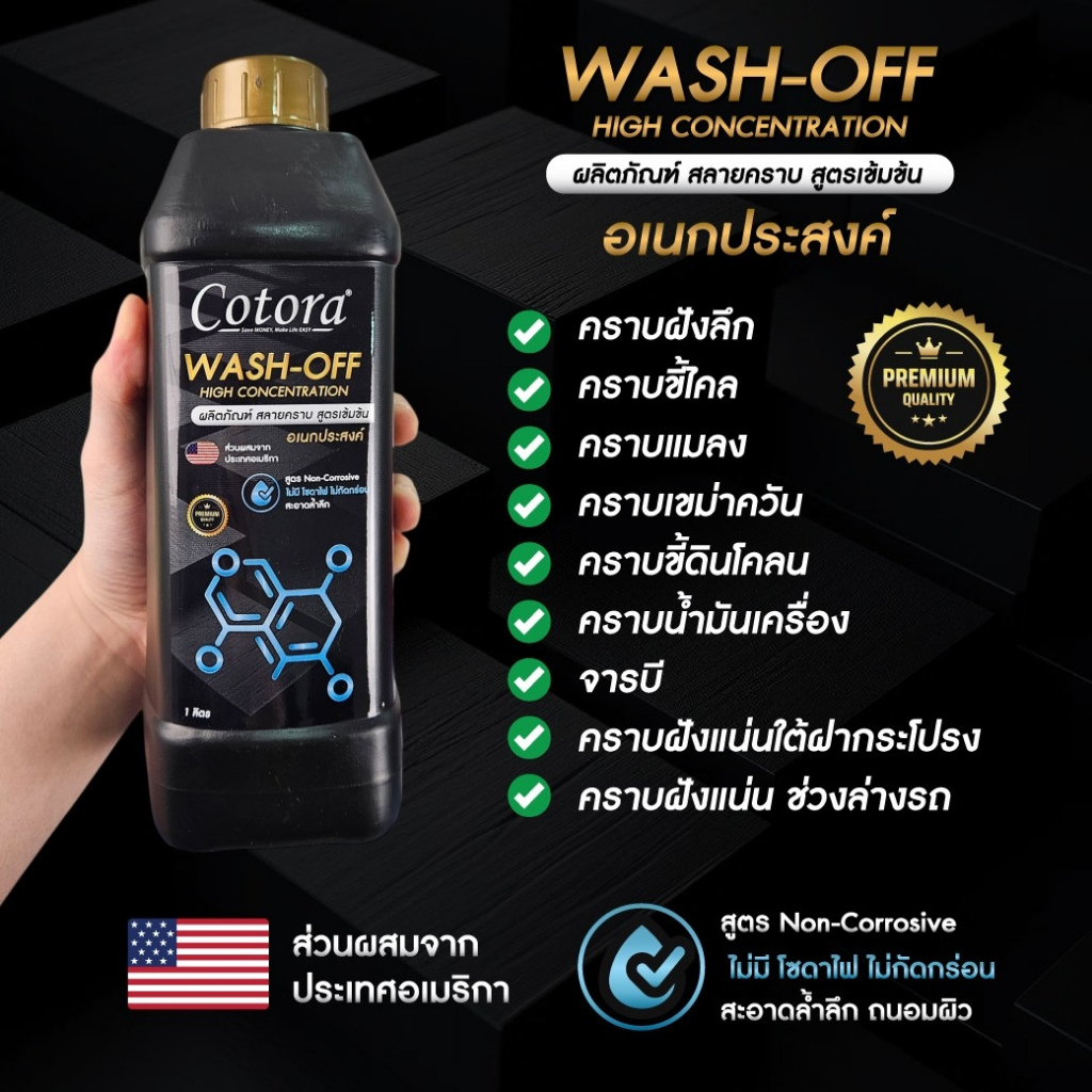 Cotora Wash-OFF น้ำยาสลายคราบ สูตรเข้มข้น เกรดพรีเมียม อเนกประสงค์ กลิ่นหอมสดชื่น 1ลิตร (แถมฟรี ฟ๊อกกี้ พร้อมใช้งาน)