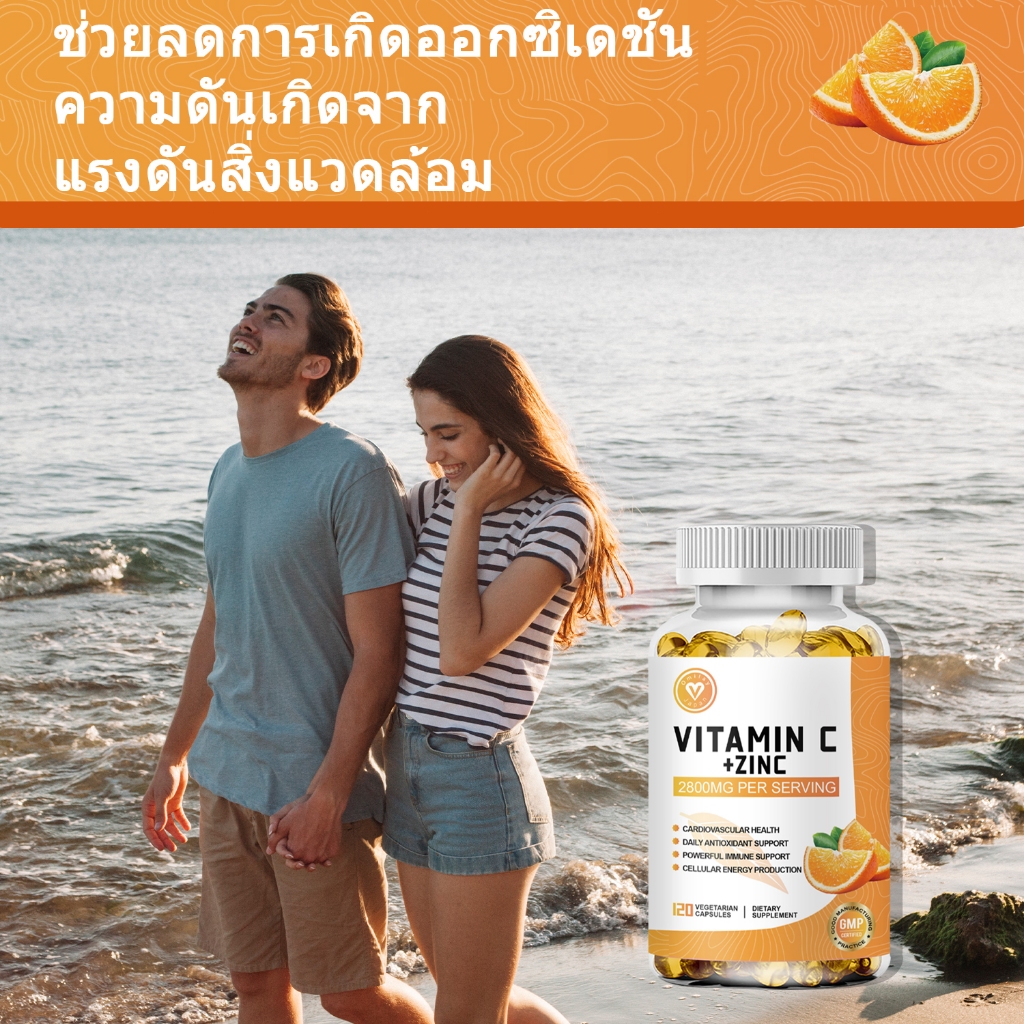 MAMA BEAUTY Vitamin C with Zinc Capsules วิตามินซี ซิงค์ แคปซูล อาหารเสริม Vegan Capsule 120 แคปซูล