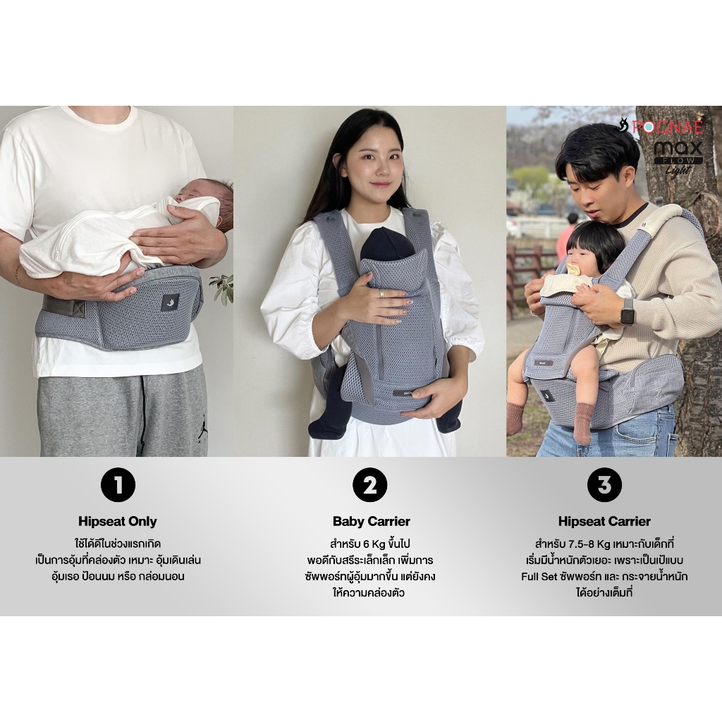 New Arrival รุ่นใหม่ POGNAE เป้อุ้มเด็ก รุ่น MAX FLOW LIGHT