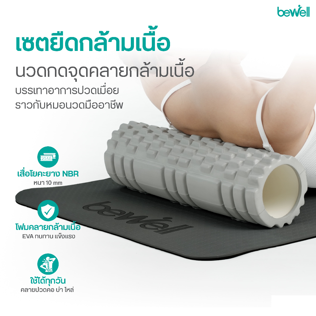 Bewell เซ็ตเสื่อโยคะ หนาพิเศษ 10 mm. และ Roller Foam โฟมคลายกล้ามเนื้อ