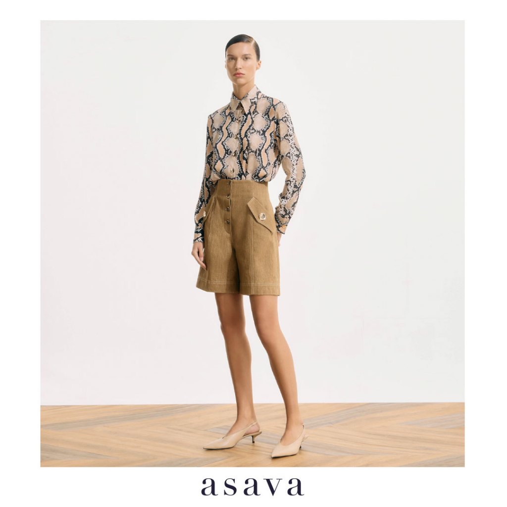 [asava ss25] Andie High Rise Shorts กางเกงผู้หญิง เอวปีน ขาสั้น กระเป๋าหน้า แต่งกระดุมหน้า แต่งดีเทลตะเข็บด้านหน้า