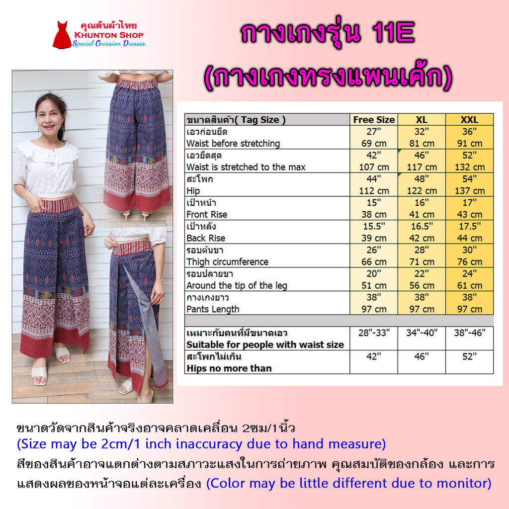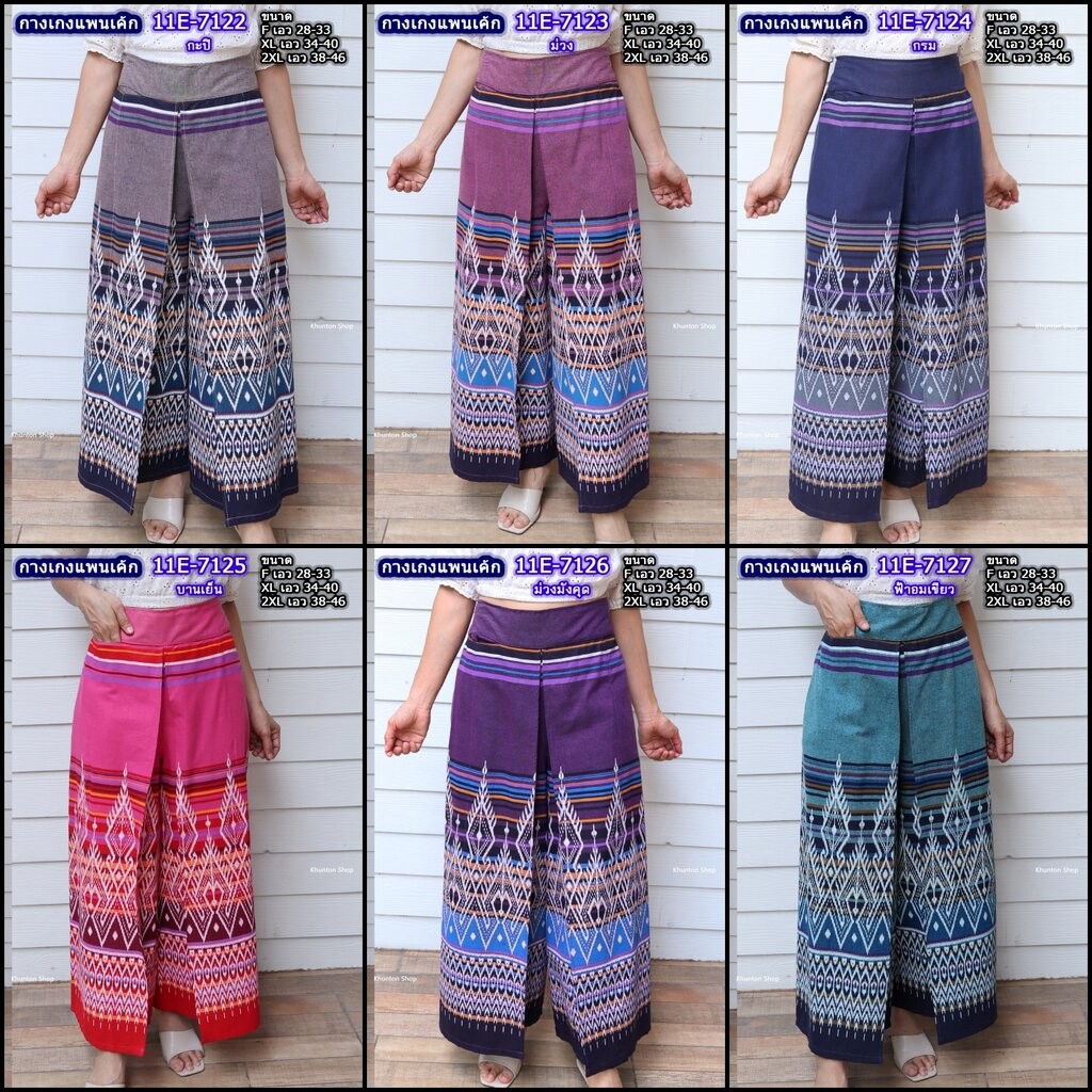 11E-02 กางเกงผ้าไทย ทรงแพนเค้ก เอว28-46 นิ้ว กางเกงผ้าฝ้ายพิมพ์ลาย กางเกงแพนเค้ก มีกระเป๋าซ่อน
