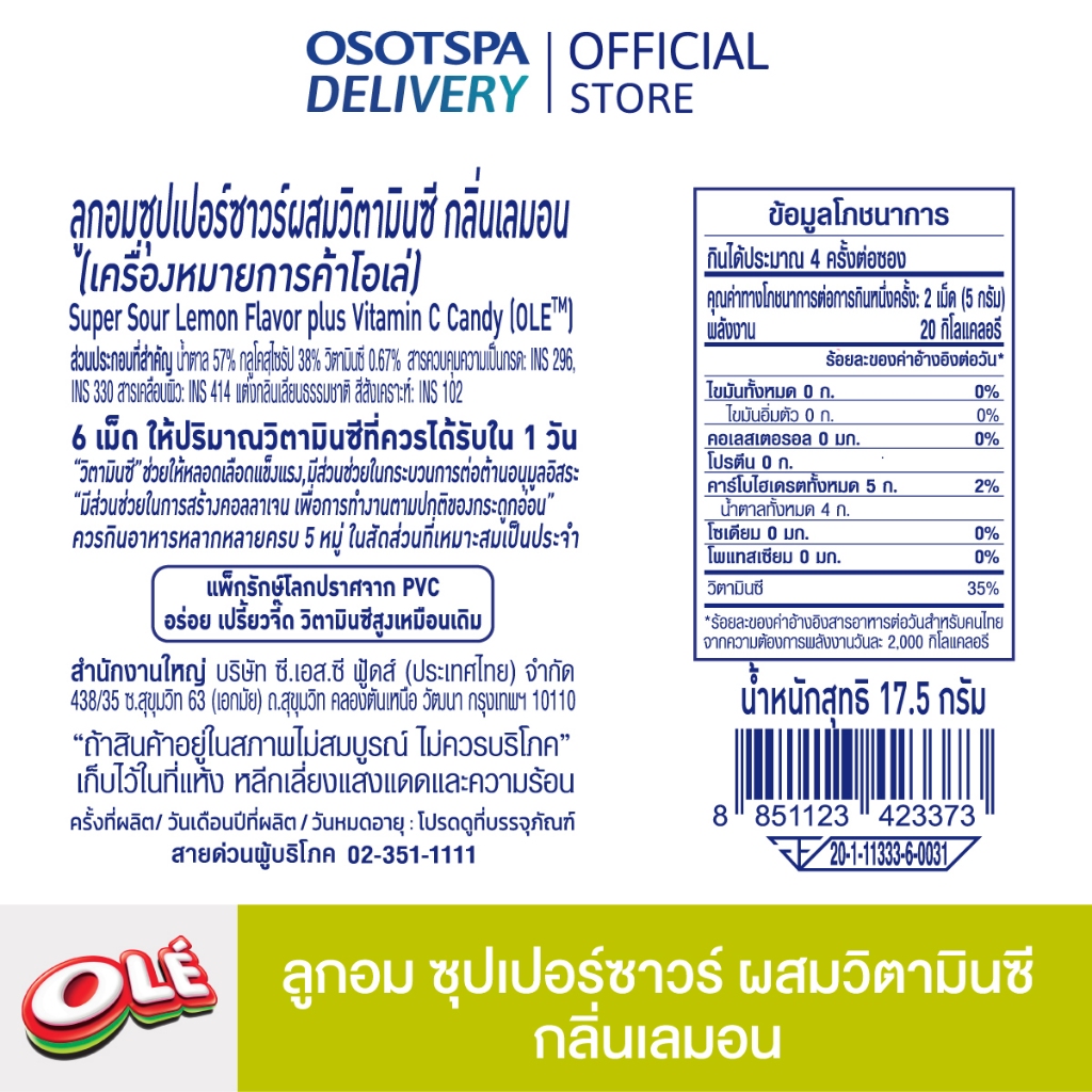 OLE โอเล่ ลูกอมซุปเปอร์ซาวร์ผสมวิตามินซี เปรี้ยว หวาน ซ่า กลิ่นเลมอน เปรี้ยวจี๊ด สดชื่น ตื่นเต็มตา 17.5g เลือกแพ็คด้านใน