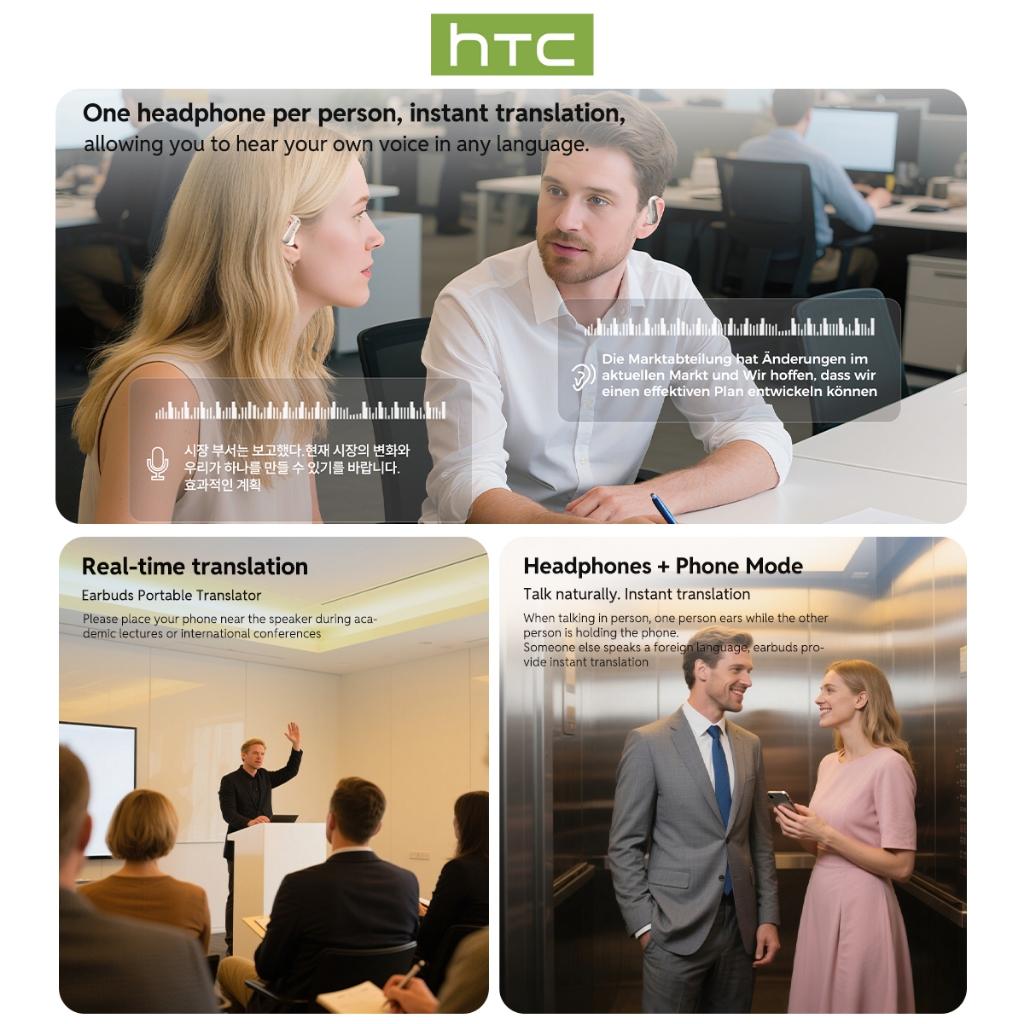 HTC NE52 หูฟัง AI Translation รองรับ 134 ภาษา การเชื่อมต่อ Bluetooth 6.0 เสียง True HiFi ดีไซน์แบบใส่ในหูที่สวมใส่สบาย กันน้ำระดับ IPX5