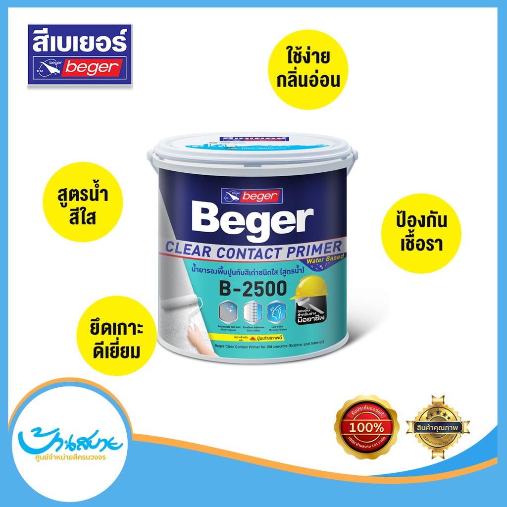 สีรองพื้นปูนเก่า สีรองพื้น Beger B-2500 ขนาด 3.5 ลิตร รองพื้นสูตรน้ำ สีใส ClearContact รองพื้นปูนทับสีเก่า