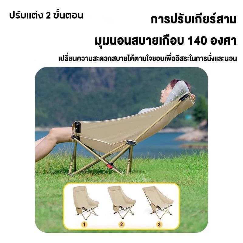 เก้าอี้แคมป์ปิ้ง เกียร์สามปรับได้ เก้าอี้สนาม พับได้ แบบพกพา ปิคนิค แถมถุงเก็บ รับน้ำหนัก 300KG