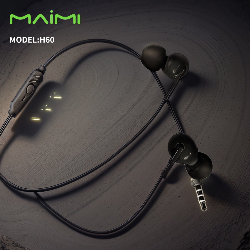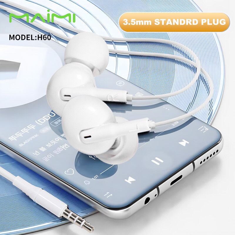 Maimi หูฟัง รุ่น H60 Earphone 3.5mm กดรับสายได้ เสียงดี ทั้งฟังเพลงและสนทนา ใช้งานได้ยาวนาน มี2สี