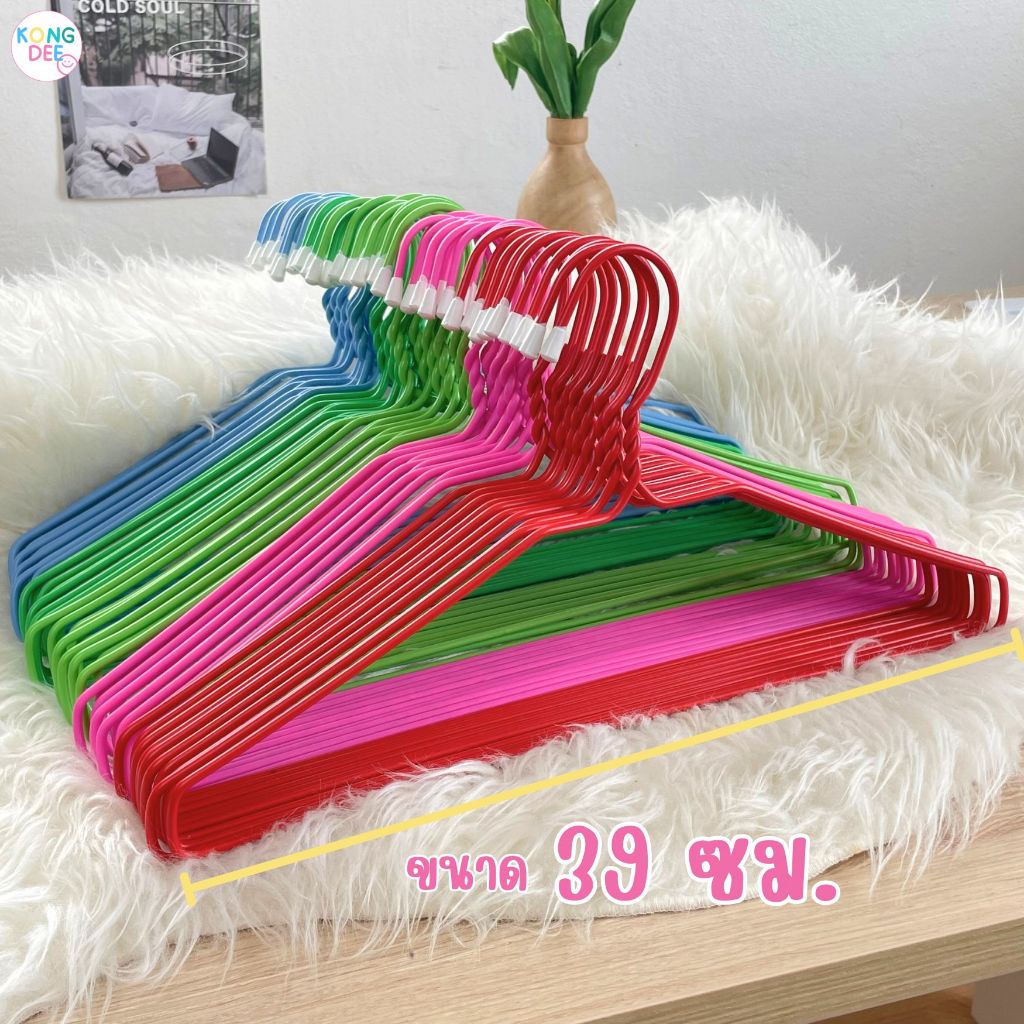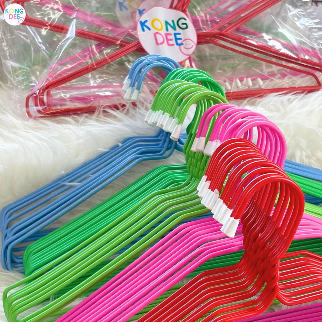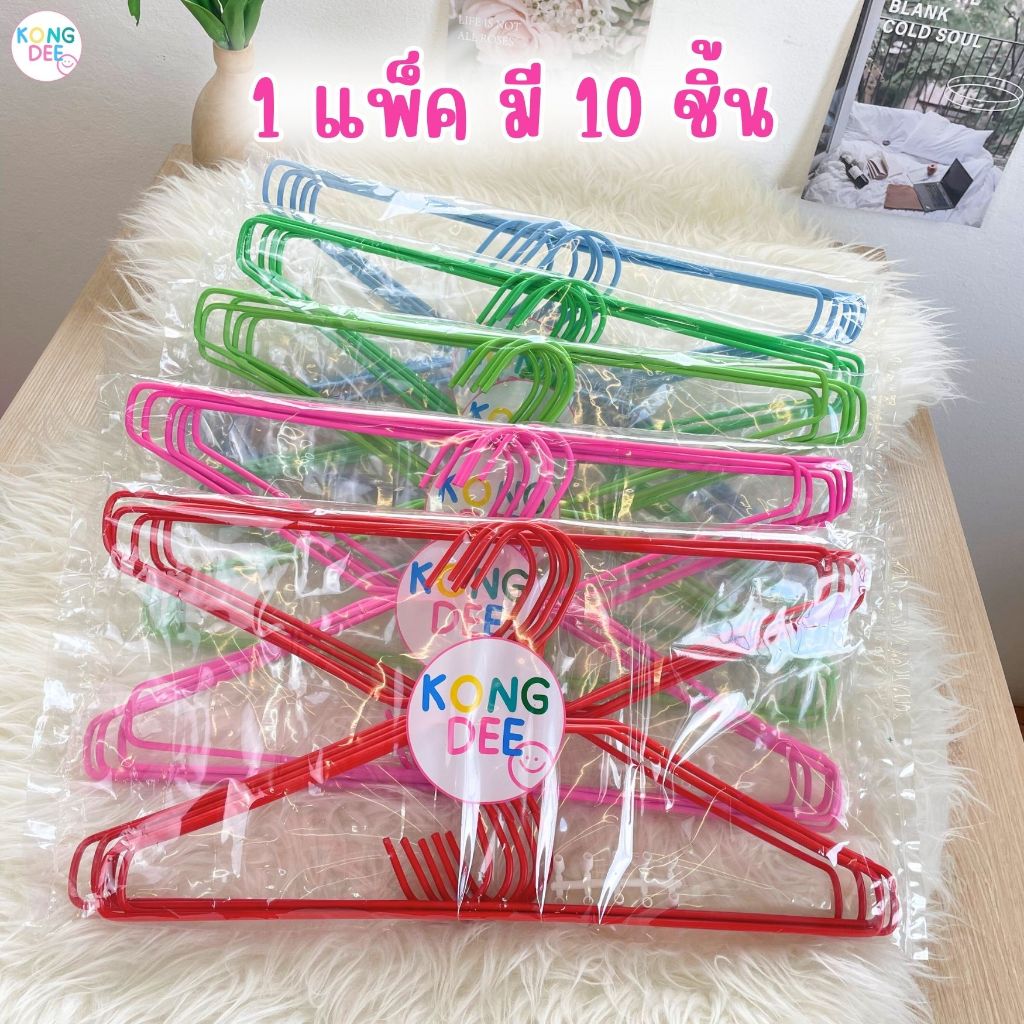 ส่งฟรี ไม้แขวนเสื้อ ไม้แขวนลวด ลวดหุ้ม พลาสติก สวย ราคาถูก 1แพ็ค 10ชิ้น #A04