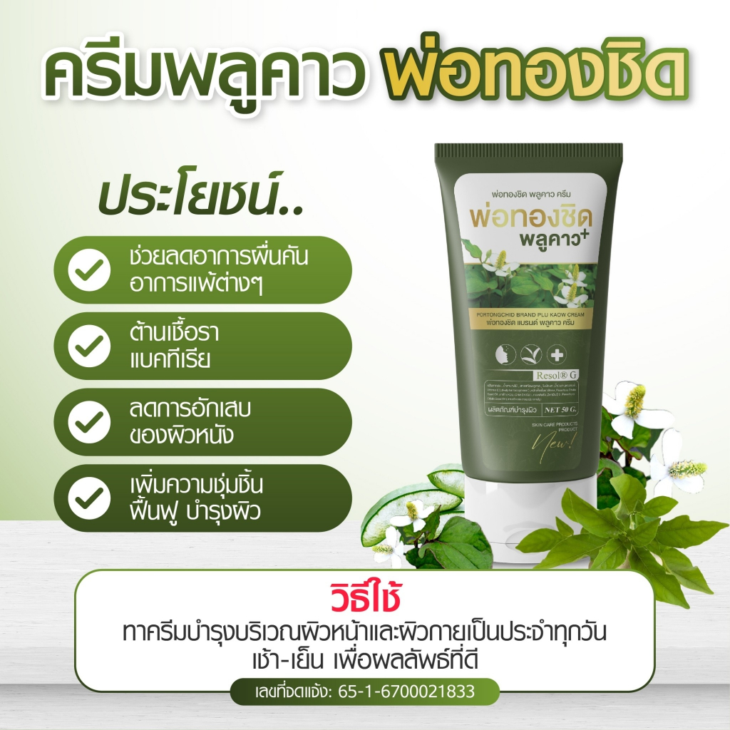 Munjai Plukaow Plus ครีมบำรุงผิวจากพลูคาว พ่อทองชิด สูตรลดเลือนการอักเสบและผิวคัน 30 กรัม