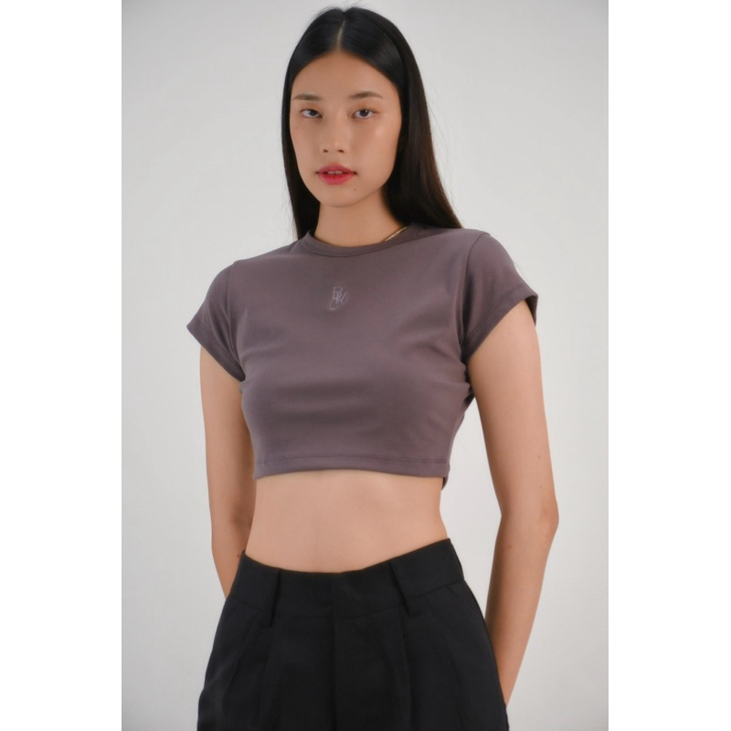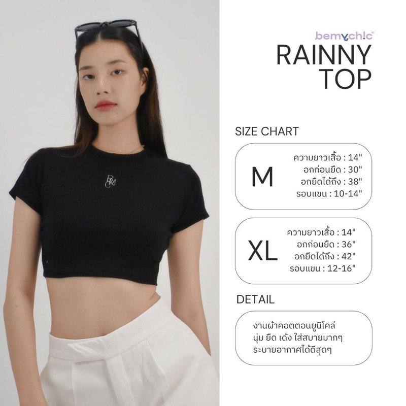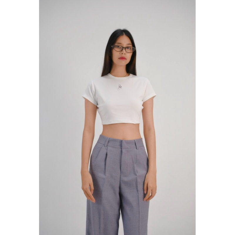 (ไม่ผลิตเพิ่ม)BEMYCHIC เสื้อครอปทรง baby tee รุ่นRAINNY CROP TOP เสื้อครอปรัดรูปผู้หญิงปักโลโก้ย่อแบรนด์