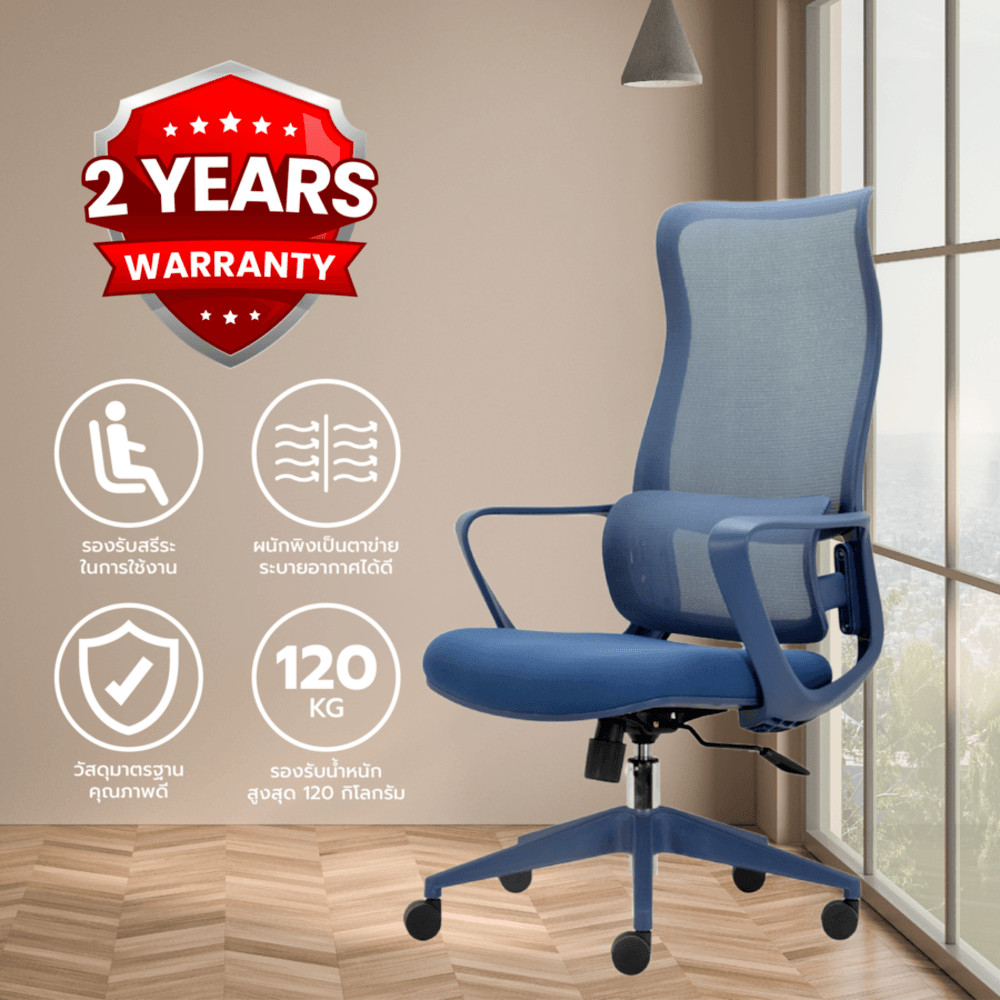 GlobalHouse SMITH เก้าอี้สำนักงาน HIGH BACK รุ่น GOHAN -04 ขนาด 64x66x113.5-121 ซม. สีน้ำเงิน สินค้าของแท้คุณภาพดี