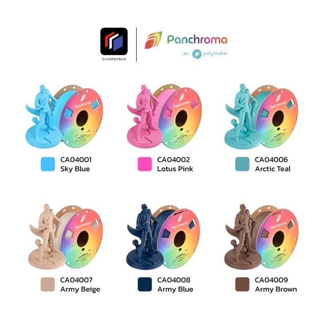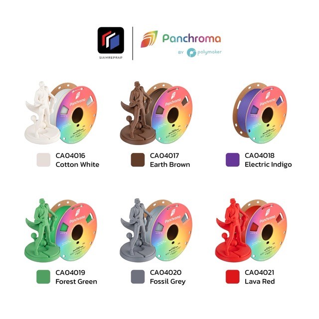 เส้น PLA Panchroma สีด้าน ตัวเดียวกับ Polyterra มี 38 สี ขัดง่าย Support แกะง่าย ขนาด 1.75 มิล