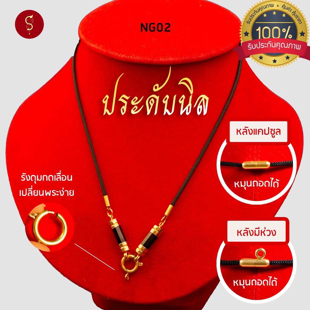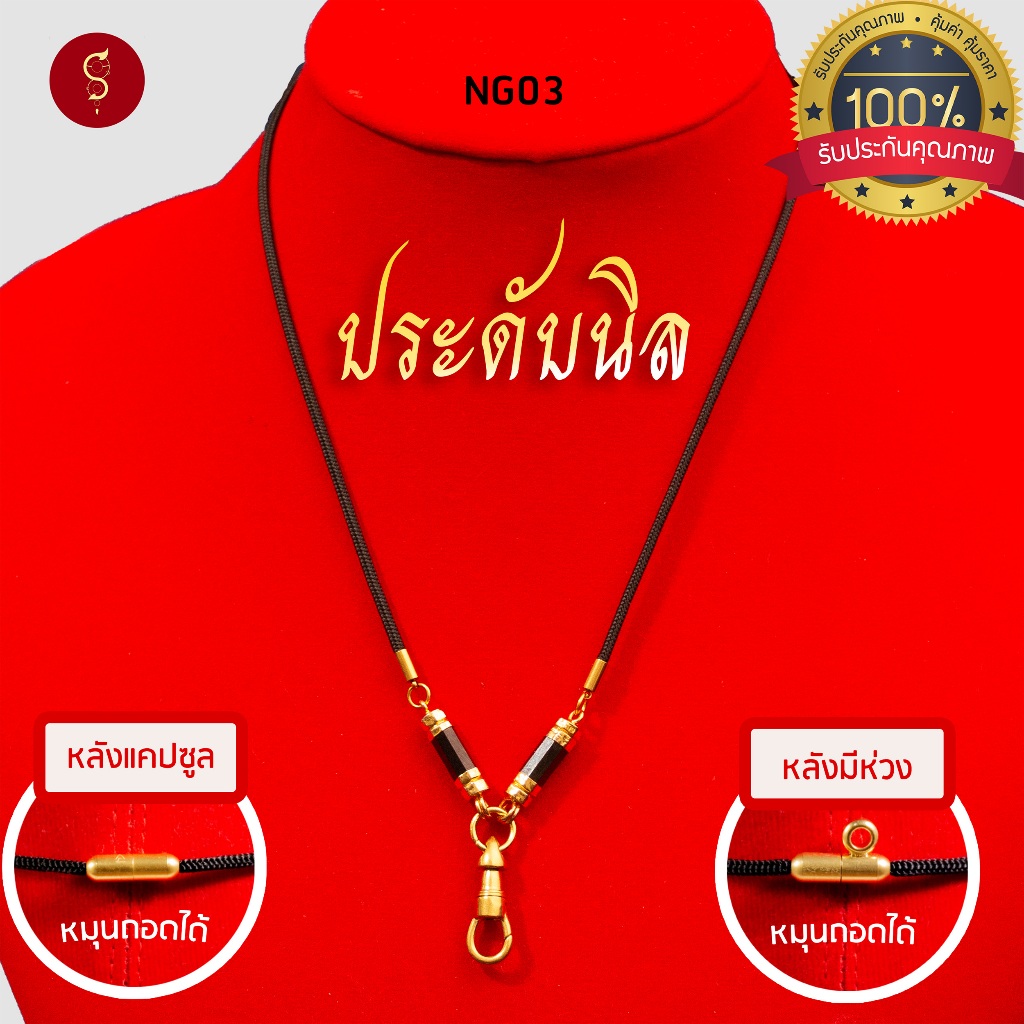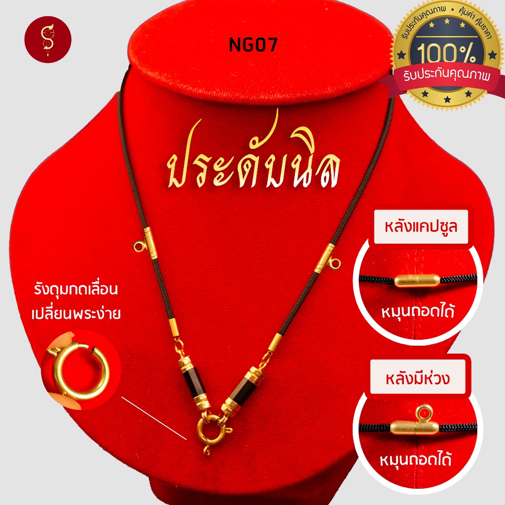 [แถมฟรี* มีใบรับประกัน] สร้อยเชือก ห้อยพระ ประดับนิล คล้องหน้า 1 องค์ l เพิ่มแคปซูล หลังมีห่วงได้