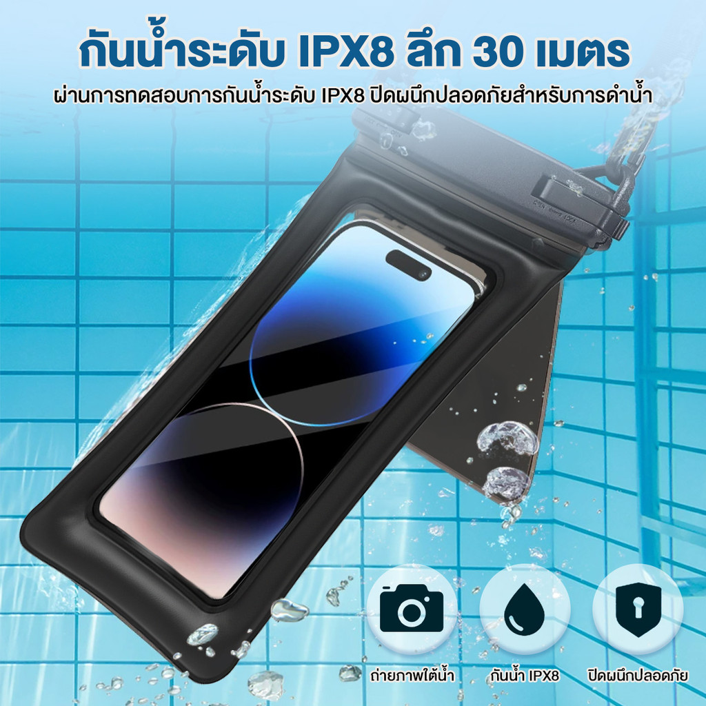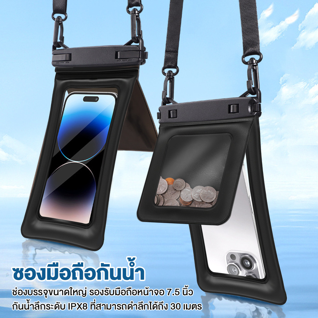 ซองกันน้ำ ซองกันน้ำมือถือ รุ่น2ช่อง ซองใส่โทรศัพท์กันน้ำ คุณภาพสูง รองรับหน้าจอขนาด 7.5 นิ้ว