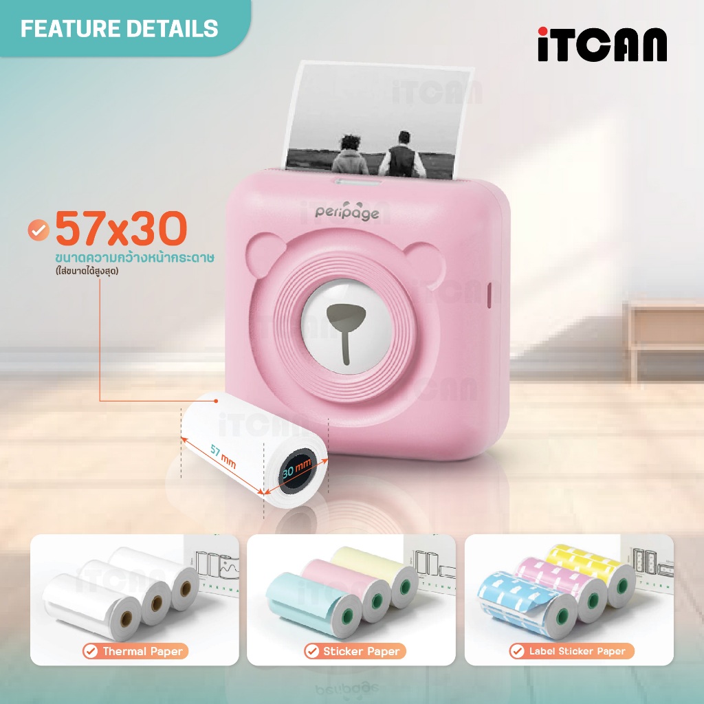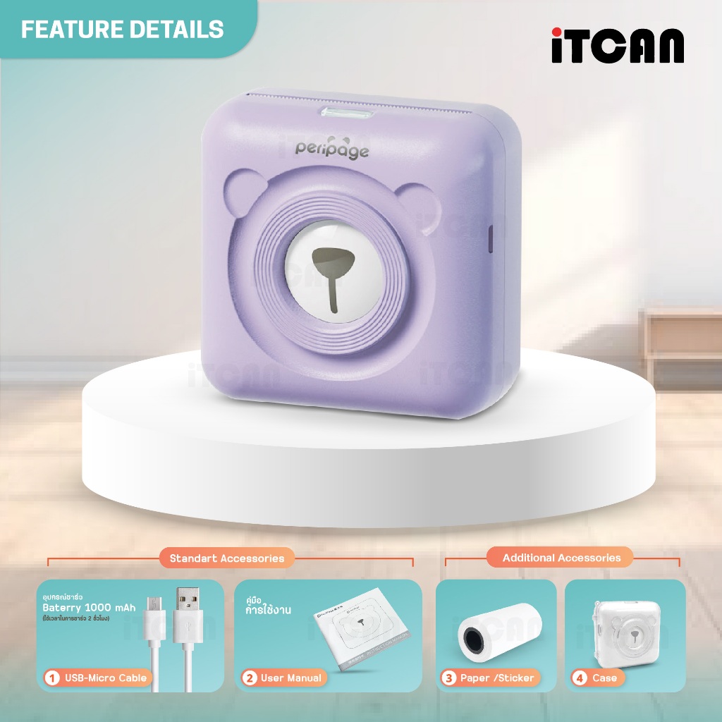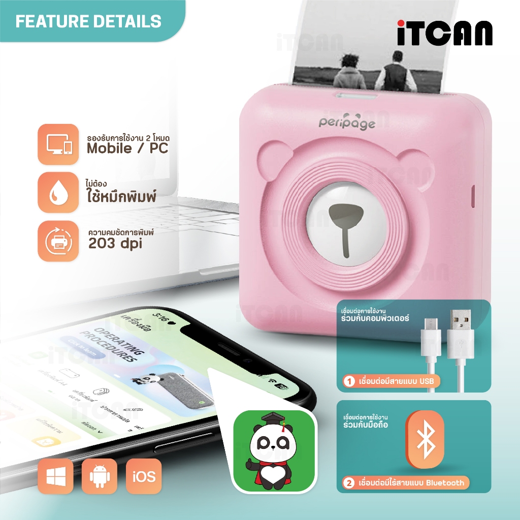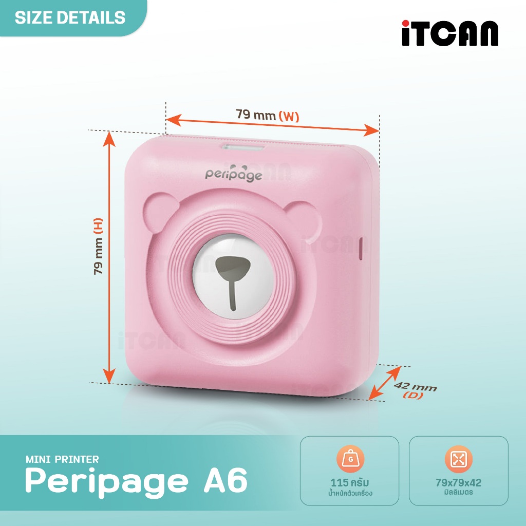 iTCAN Peripage A6 เครื่องปริ้นหมี เครื่องปริ้นพกพา เครื่องปริ้นความร้อน Mini Printer Bluetooth
