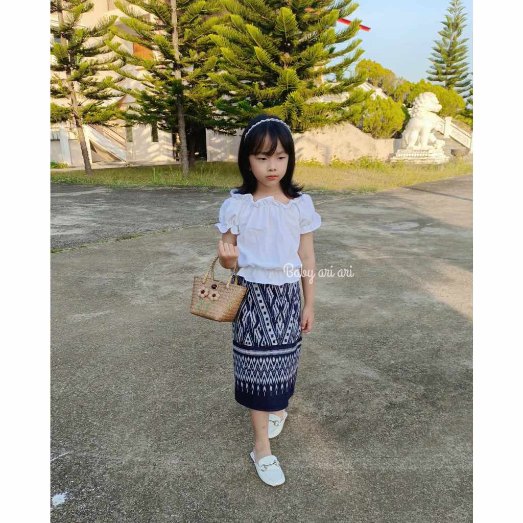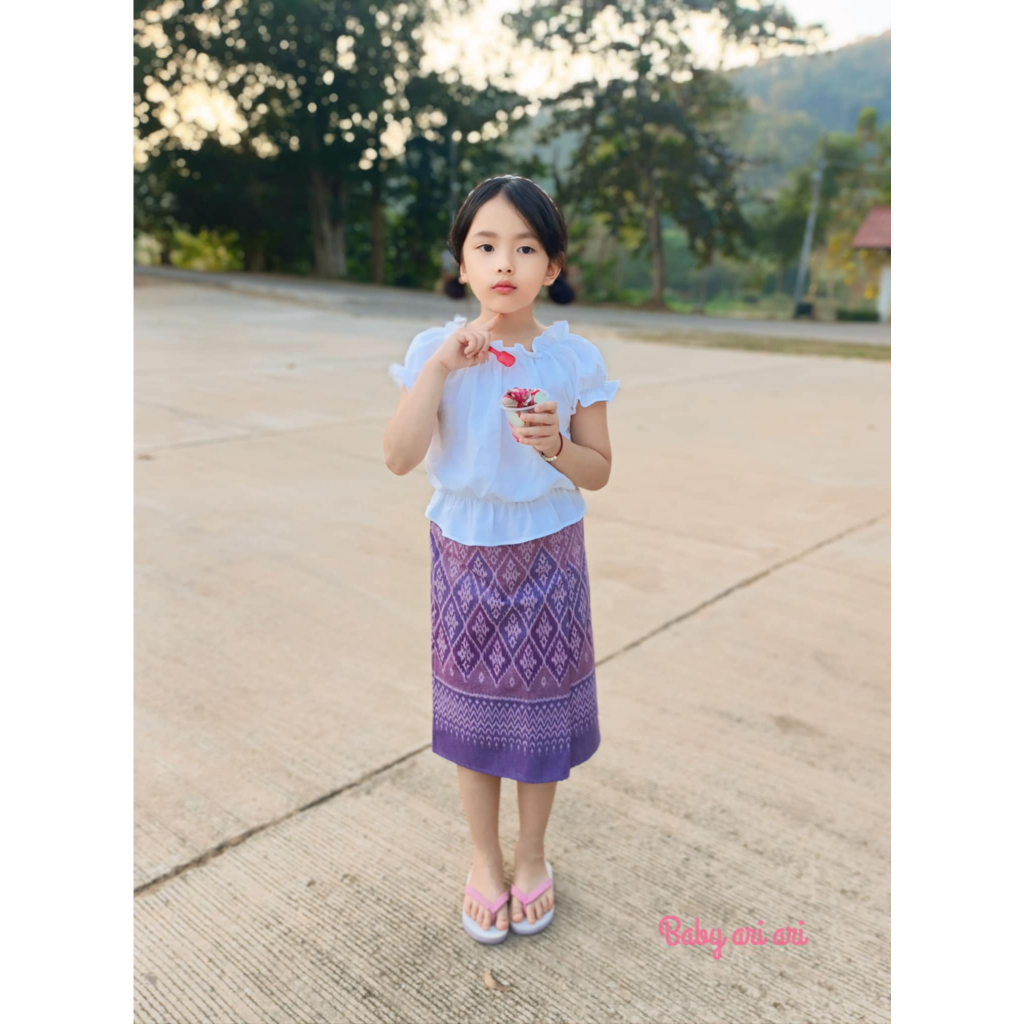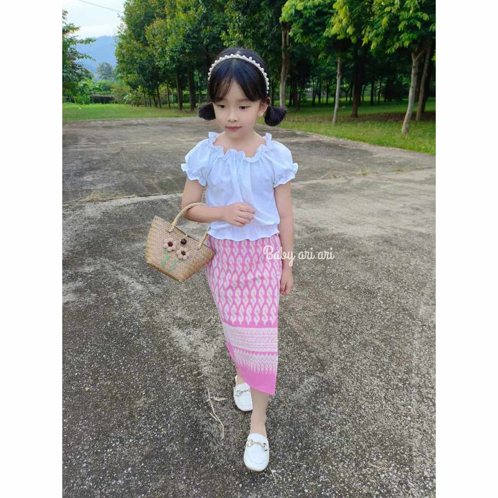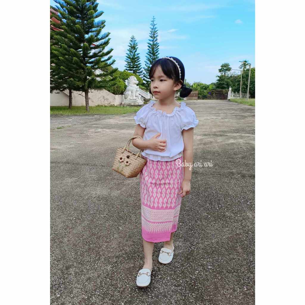 ชุดไทยเด็กผู้หญิง ผ้าซิ่นเอวยางยืดสำเร็จรูป พร้อมส่ง