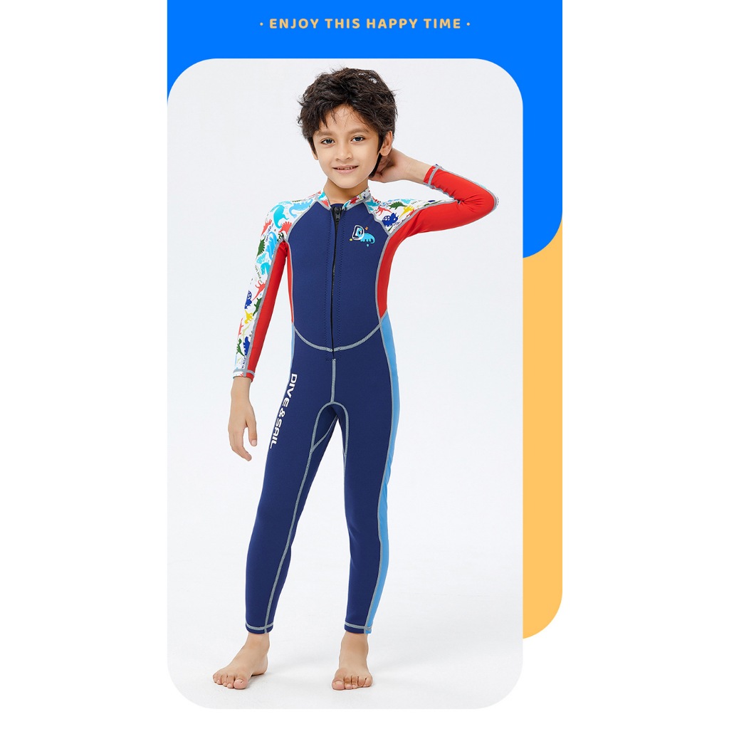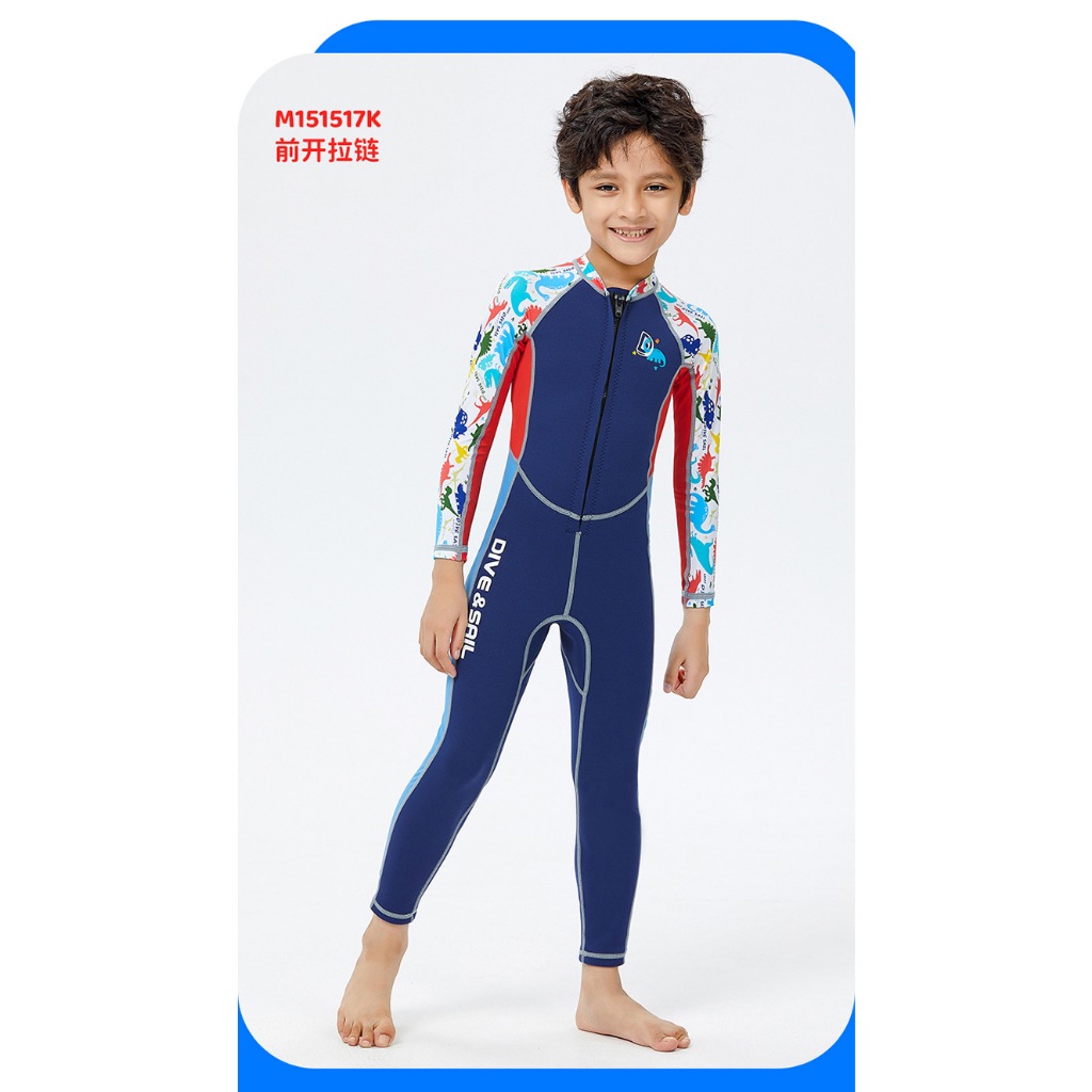 (แถมหมวก)ชุดว่ายน้ำเด็กชาย เก็บอุณหภูมิ 2 MM น้ำเงินซิปหน้า-ยาว
