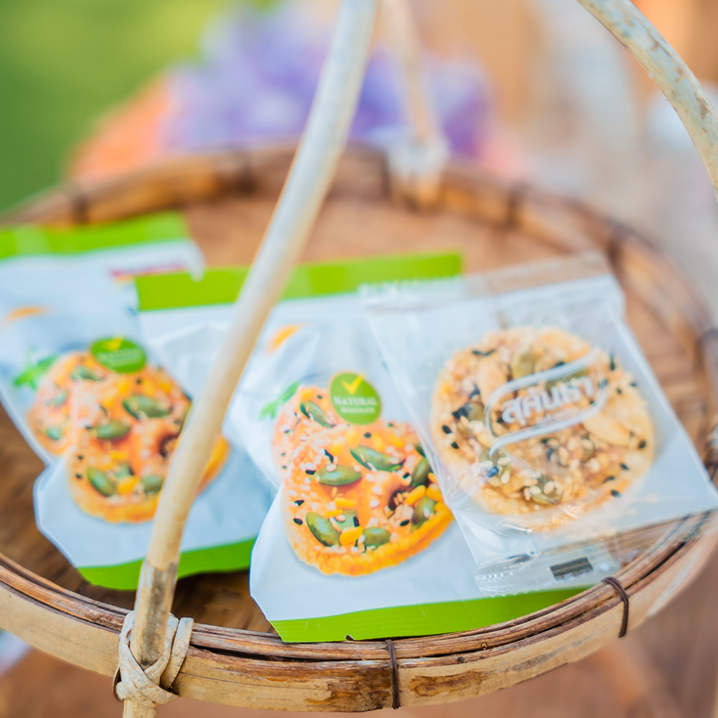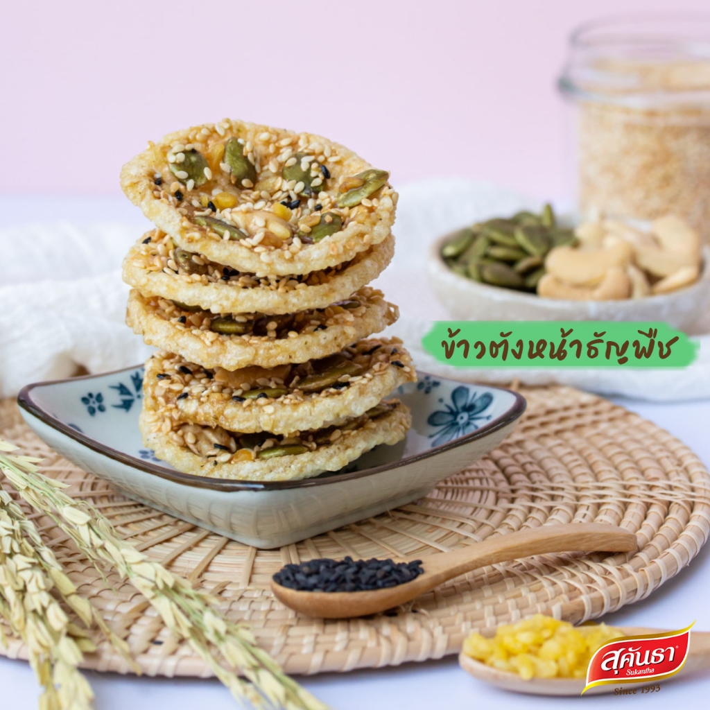 ขนมไทย สุคันธา ข้าวตังธัญพืช ซอง 20 กรัม ขนมอร่อยจากเพชรบุรี แพคชิ้นเดี่ยว 3 ชิ้น SUKANTHA Rice Crisps with Mix-seed
