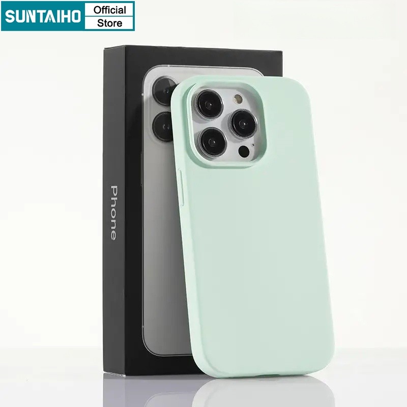 Suntaiho เคสไอโฟน หรูหราสีดําผู้ชายผู้หญิงซิลิโคนเหลวเคสโทรศัพท์พรีเมี่ยมสไตล์เรียบง่ายปลอกกันกระแทกสําหรับ iPhone 11 12 13 14 15 16 Pro Max IP 7 8 Plus Iphon X Xs XR Xs Max
