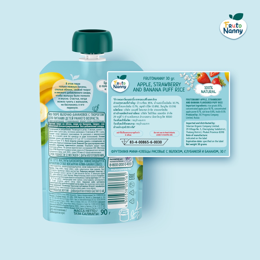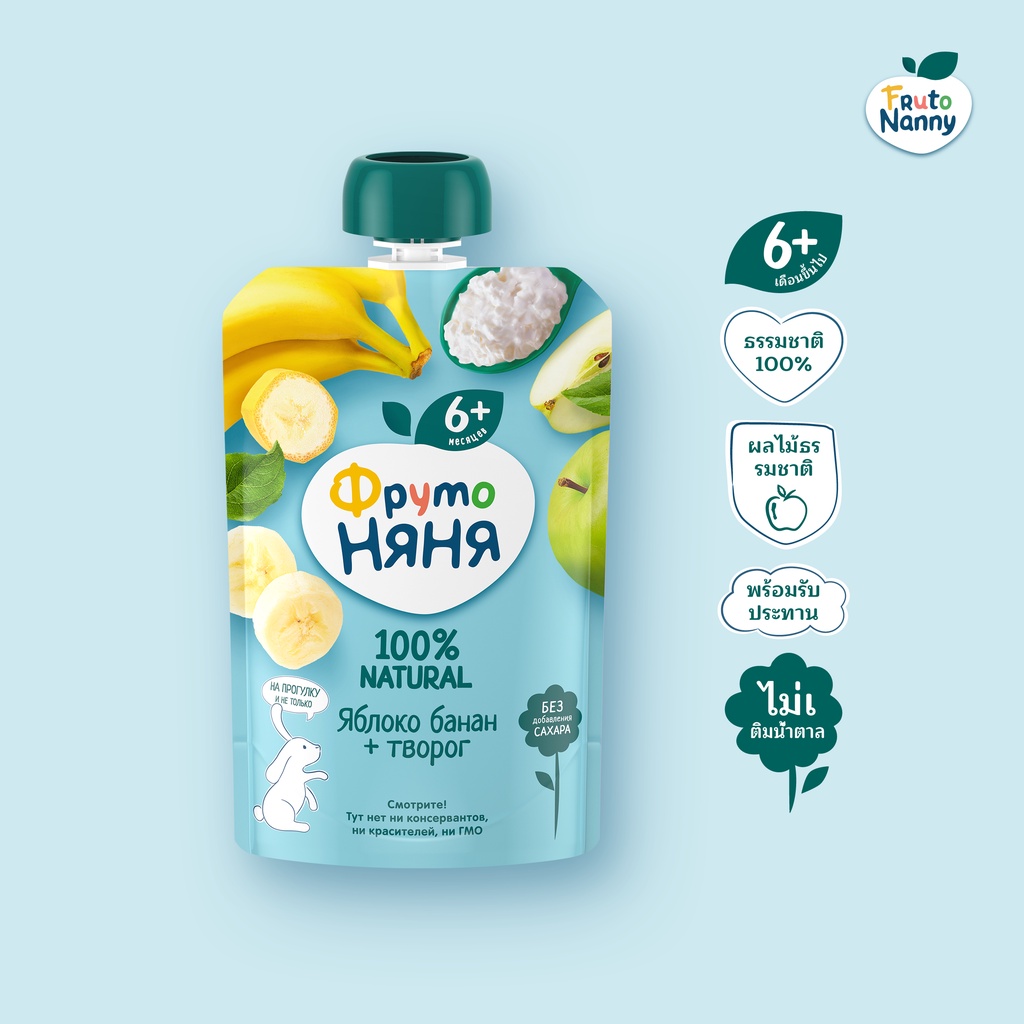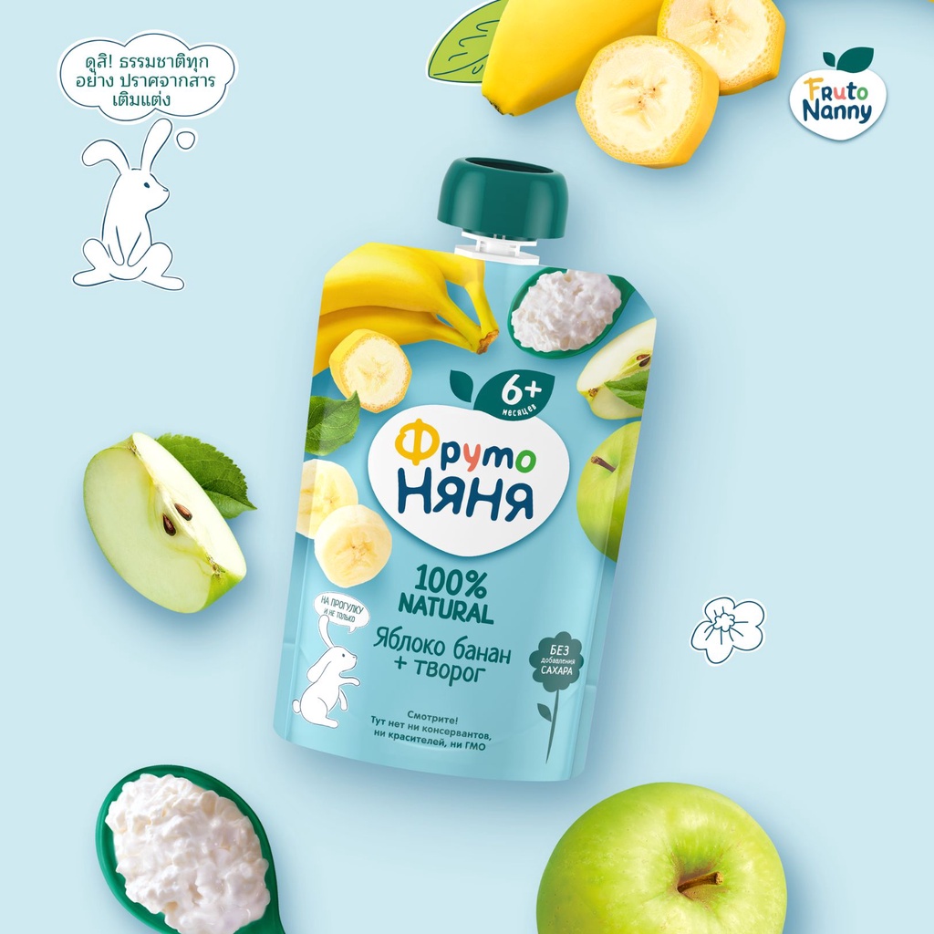 FrutoNanny Puree | เพียวเร่เด็ก 100% ธรรมชาติ ออร์แกนิค แอปเปิ้ล กล้วย ชีส ไม่มีน้ำตาล