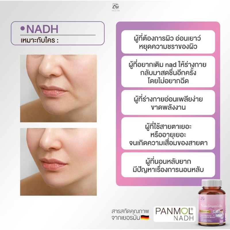 👉อะแกลม ไนอะซินาไมด์ พลัส NADH แอสตร้าคิวเท็น คอเซร่า ซินซี AGLAM ช่วยฟื้นฟูเซลล์ผิว ชะลอแก่