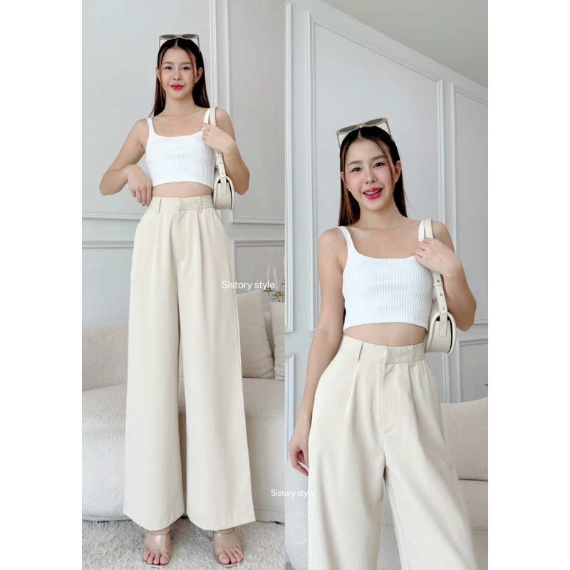 Molly pants กางเกงเอวสูงขายาวกระบอกใหญ่ กระเป๋าเจาะหลัง ป้าย sistory