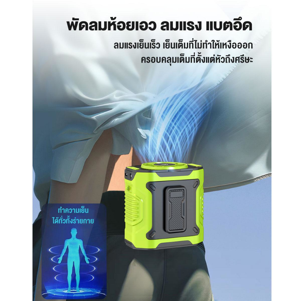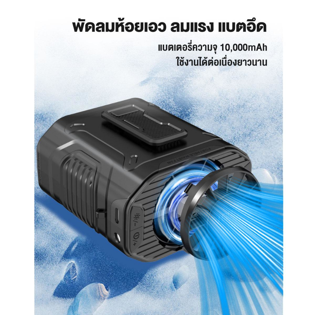 【จัดส่งทันที】พัดลมคาดเอว 10000mAh พร้อมไฟLED ลมแรง100ระดับ แสดงเลข LED ชาร์จType-C พัดลมพกพา