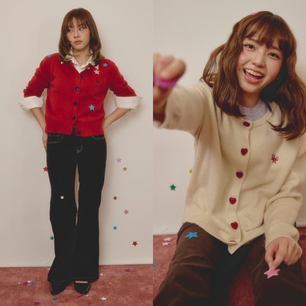 (พร้อมส่ง)Bemingtop667(S-L) - BMG knit Cardigan Ver.5 ผ้าลูกฟูก ดีเทลกระดุมหัวใจสีแดง