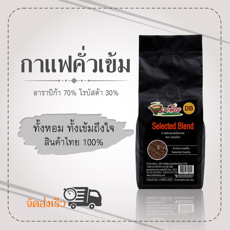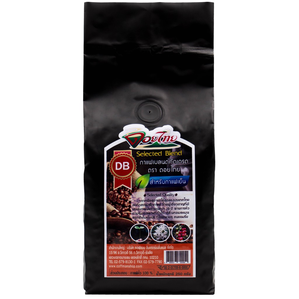 เมล็ดกาแฟดอยไทยกาแฟผสม อาราบิก้า&โรบัสต้า 250 กรัม*เป็นแบบเม็ด* DB