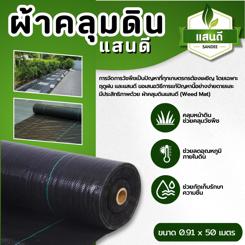 ผ้าคลุมดิน สีดำ กันวัชพืช พลาสติกHDPE ป้องกันแสงUV อยุ่ทนกว่า 5-8 ปี 0.9m x 50m (สั่งได้ไม่เกิน 2 ชิ้น / 1 คำสั่งซื้อ)