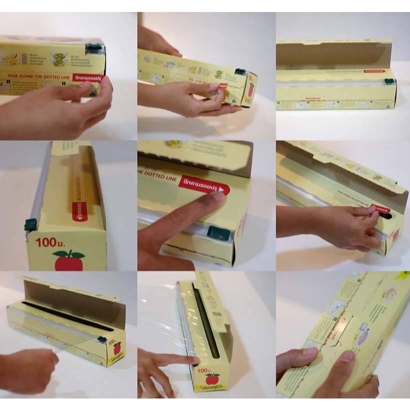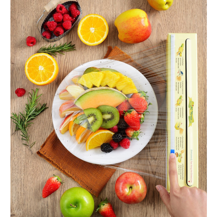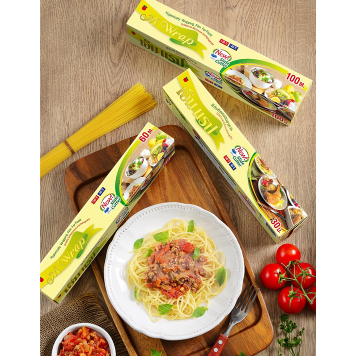M WRAP ฟิล์มถนอมอาหาร ฟิล์มยืดเอ็มแรป พร้อมใบมีดสไลด์ หนา 11 ไมครอน กว้าง20/30 ซม. ยาว30/40/50/100 ม.